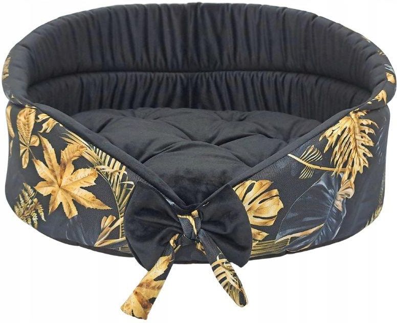 FERA Gold Legowisko z kokardką owalne S 53x44x26 cm Eleganckie, owalne legowisko dla psów i dla kotów. Legowisko wykończone jest estetycznym materiałem z nadrukiem złotych liści. Pasuje do każdego wnętrza i nadaje mu klimatu i charakteru. Legowisko z miękką, wyjmowaną poduszką w środku. Możliwość …