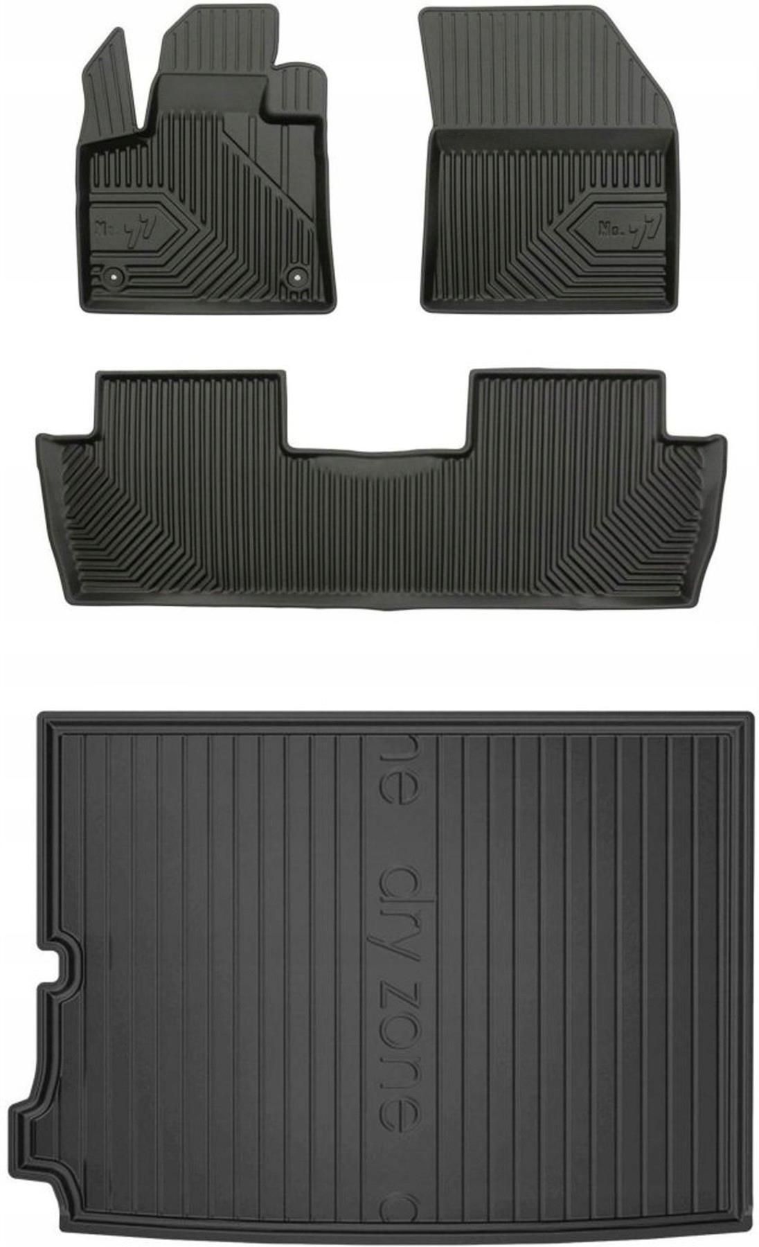 DEDYKOWANY ZESTAW PRODUKTÓW FIRMY FROGUM! KOMPLET PRZEZNACZONY DO PEUGEOT 5008 II (2017-) Mata do bagażnika Dryzone – ochrona bagażnika Twojego auta w przystępnej cenie. DYWANIKI GUMOWE KLASY PREMIUM Z WYSOKIEM RANTEM I WYPROFILOWANIEM, No.77! PEUGEOT 5008 II (2017-) Do wszystkich wersji Zdjęcie obok przedstawia rzeczywisty kształt i wygląd oferowanego zestawu Najwyższej jakości mata i dywaniki wykonane z topowych materiałów, idealnie dopasowane do modelu auta i wersji wyposażenia. Produkty w całości wyprodukowane w Polsce przez jednego z największych producentów mat bagażnikowych z uwzględnieniem najwyższych standardów i norm, co potwierdzają liczne certyfikaty. Dywaniki z topowej serii NO.77! Dzięki laserowym pomiarom podczas produkcji uzyskano idealne dopasowanie do kształtu podłogi Wykonane z najwyższej jakości tworzywa nie zawierającej toksycznych komponentów Duża odporność na zużycie mechaniczne i warunki atmosferyczne Zachowują swoją elastyczność przy zmianach temperatur Bezzapachowe (wyczuwalny delikatny aromat waniliowy) BEZPIECZEŃSTWO I KOMFORT! Stopery mocujące eliminują możliwość przesuwania się dywaników podczas jazdy, co znacząco wpływa na bezpieczeństwo i komfort podróży Ochrona wnętrza! Wysoki rant pozwala na utrzymanie zanieczyszczeń na powierzchni dywanów. Dzięki temu zabezpieczają tapicerkę przed zniszczeniem! Funkcjonalne wkłady bagażnika z serii DryZone! Wkładka do samochodu DryZone jest lekka i antypoślizgowa, dzięki czemu nie przesuwa się po podłodze. Mata samochodowa DryZone pozwala na utrzymanie czystości i porządku w bagażniku, dodatkowo bardzo łatwo ją zamontować. Solidna i wytrzymała Matę do bagażnika DryZone wykonano z najwyższej jakości materiału TPE, autorskiej mieszanki FroGum. Wkładka do samochodu jest odporna na odkształcenia, zachowuje swoją elastyczność przy zmianach temperatury, oraz odporność na chemikalia i na ścieranie. Praktyczna i bezproblemowa Doskonale dopasowana wkładka samochodowa DryZone ma wysokie ergonomiczne krawędzie przylegające do bagażnika, które świetnie chronią przez zabrudzeniami. Mata do bagażnika DryZone nie potrzebuje żadnej dodatkowej konserwacji, jest praktycznie bezzobsługowa. Niezawodna Funkcjonalna wkładka do bagażnika DryZone bardzo ułatwia utrzymanie porządku w samochodzie przez cały rok. Mata samochodowa DryZone jest bezzapachowa z dodatkiem delikatnego, relaksującego aromatu wanilii. Bezpieczna i ekologiczna ochrona Wkładka do bagażnika DryZone wykonana jest przez FroGum z atestowanych materiałów nieszkodliwych dla zdrowia, z poszanowaniem ochrony środowiska – ponieważ materiał podlega w 100% recyklingowi.