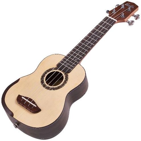 Ukulele sopranowe (21") z serii MASTER Class. Płyta wierzchnia: lity świerk. Boki i tył: palisander. Gryf: okume. Podstrunnica i mostek: palisander. Siodełko: kość. Profesjonalne maszynki olejowe (die cast). Binding: palisander. Rozetka z wklejanego palisandru + Abalone. Podcięcie krawędzi typu …