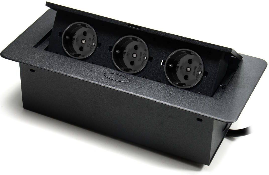 Gniazdo Nablatowe Chowane w Blat Kuchenny Potrójne Wpuszczane 3X 230V Biuro SKU: SPSD33B_V2 Najważniejsze Cechy -Kompatybilność: Idealny do użytku w biurach, domach, salach konferencyjnych i salonach sprzedaży. -Uniwersalne 3x gniazda Schuko: Gniazda typu F pozwalają na podłączenie urządzeń elektrycznych o różnych napięciach. -Elegancki design: Wykonany z wysokiej jakości aluminium w kolorze czarnym. -Łatwa instalacja: Prosty montaż poprzez wycięcie otworu w blacie i umieszczenie gniazda w odpowiednim miejscu. -Praktyczna otwierana pokrywa: Praktyczna pokrywa chroni porty, gdy nie są używane, zapewniają estetyczny wygląd. -Długość kabla: Kabel zasilający z wtyczką typu E o długości 1,5m zapewnia wygodne podłączenie do zasilania. Gniazdo Schuko Bezpieczne Dzięki odpowiedniemu uziemieniu, gniazdo Schuko zwiększa bezpieczeństwo korzystania z urządzeń elektrycznych. Brak bolca umożliwia obrócenie wtyczki o 180 stopni. Funkcjonalne Zaprojektowane z myślą o europejskich standardach, dzięki czemu pasuje do wielu urządzeń elektrycznych. Otwierane gniazdo blatowe Otwierana konstrukcja umożliwia łatwy dostęp zasilania wtedy, gdy jest to potrzebne. Wystarczy delikatnie nacisnąć pokrywę. Po zakończonej pracy można łatwo zasłonić, co pozwala na utrzymanie porządku i chroni je przed kurzem oraz uszkodzeniami. dyskretnie ukryj w blacie zachowaj estetykę i porządek Specyfikacja Kabel zasilający: 1,5m z wtyczką typu E Zasilanie sieciowe: 230 V 50 Hz Wymiary puszki (dł./wys./gł.): 22 x 10,8 x 6,7 cm Wymiary zewnętrzne: 26,6 x 11,8 cm Sugerowane wymiary otworu: 22,4 x 10,9 cm Grubość blatu: 0,5 do 3,2 cm Kolor: Czarny Rodzaj gniazd: 3x typu niemieckiego (Schuko) 110-250 V (16 A)