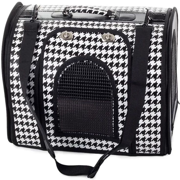 TORBA TRANSPORTOWA DLA PSA KOTA KRÓLIKA I MAŁYCH ZWIERZĄT DOMOWYCH ROZMIAR: 44cm x 25,5cm x 26cm. Czarna w kratkę Torba nosidło to wygodne i bezpieczne akcesorium do transportu małych zwierząt, idealne na krótkie podróże, wizyty u weterynarza, a także dłuższe wyjazdy. Torba jest wykonana z wytrzymałych materiałów, wyposażona w wentylowane panele. Wiele modeli posiada usztywnione dno oraz uchwyty i pasek na ramię, aby ułatwić właścicielowi transport. Cechy produktu Materiał wodoodporny Posiada 3 wejścia zamykane na zamek suwakowy (2 x boki, 1 x przód) Przód wejścia posiada dodatkowo metalowe zapięcie Posiada w środku karabińczyk do przypięcia obroży lub szelek Posiada wyjmowaną wkładkę, co umożliwia łatwe czyszczenie Mocny, obszyty materiałem uchwyt ułatwia noszenie torby w ręku Posiada mocny i regulowany pas na ramię Posiada skuteczny system wentylacji Nóżki na spodzie torby Elegancki i modny wygląd Idealna dla króliczków, fretek, świnek morskich, kotów i psów Kolor: czarna w kratkę Wymiary Długość: 44cm Wysokość: 26cm Szerokość: 25,5cm Wkładka: 40cm x 22,5cm Po złożeniu: 44,5cm x 44cm Wejście przód: 24,5cm x 20,5cm Zestaw zawiera: Fabrycznie nową torbę transportową Wyjmowaną wkładkę Regulowany pasek na ramię Do pobrania Instrukcja z informacją o bezpieczeństwie.