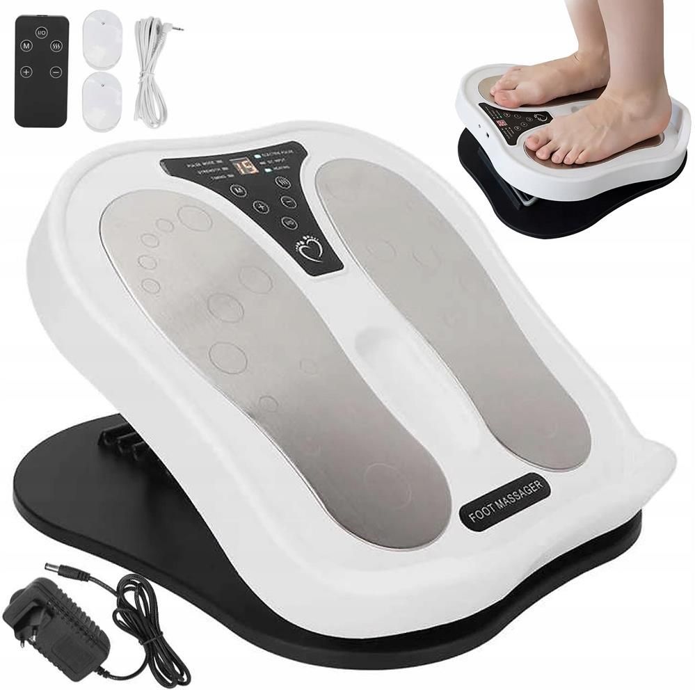 Elektrostymulacja mięśni jest zabiegiem niezwykle pożytecznym w kontekście rekonwalescencji po wielu kontuzjach. Sportowcy doceniają urządzenia także ze względu na lepszą regenerację i likwidację bólów i zakwasów. Elektrostymulator mięśni jest to urządzenie do terapii przeznaczone do domowego użytku. Urządzenie do elektrostymulacji można wykorzystać w sporcie, rehabilitacji, w pielęgnacji ciała i dla poprawy urody. Stopa jest punktem kondensacji witalności ludzkiego ciała. Połowa meridianów łączących wnętrzności ludzkiego ciała zaczyna się i kończy na stopie, a na stopie gromadzi się ponad 60 punktów akupunkturowych. Dlatego nazywana jest przez ekspertów medycznych „drugim sercem” ludzkiego ciała. Urządzenie jest wielofunkcyjne. Można go używać gdy jest podłączony pod zasilacz jak również działa bezprzewodowo po wcześniejszym naładowaniu akumulatora. wyposażony jest w pilota zdalnego sterowania oraz dodatkowe nakładki do masażu innych partii mięśni. Długość panelu elektrostymulującego to 23,5cm Różnorodne tryby pracy pozwalają swobodnie regulować siłę masażu. Masażer wyposażony jest w 15 kombinacji różnych impulsów. Siłę mocy można regulować w zakresie 0-50. Masaż można ustawić w seriach czasowych trwających 15,30,45 oraz 60 minut. Dodatkowo, urządzenie posiada podgrzewający panel, dzięki któremu ścięgna lepiej będą funkcjonować a masaż będzie bardziej efektywny. Regulacja w zakresie H0 - H3 PRZYCISKI FUNKCYJNE: ✅ M - Mode - przycisk do zmiany ustawień poszczególnych fynkcji masażera ✅ "+" i "-" zwiększamy lub zmniejszamy wybraną opcję ✅ SSS - włączanie lub wyłączanie podgrzewania, każdorazowe naciśnięcie tego przycisku zmienia poziom grzania ✅ I/O Włączanie/ wyłączanie zasilania OGÓLNE ZASTOSOWANIE URZĄDZENIA: ✅ Relaks ✅ Zmęczenie mięśni ✅ Regeneracji mięśni po wysiłku ✅ Bóle pleców ✅ Bóle stawów ✅ Nerwobóle ✅ Przy bólach pourazowych układu ruchu ✅ Przy zaburzeniach krążenia krwi ✅ W chronicznych stanach bólowych o różnych przyczynach SPECYFIKACJA TECHNICZNA: ✅ Kod produktu: 24260 ✅ Materiał wykonania: tworzywo sztuczne ✅ Łatwy w użytkowaniu ✅ Pilot zdalnego sterowania ✅ Regulacja nachylenia masażera ✅ Stabilna podstawa ✅ Szeroki wybór opcji masowania ✅ Zasilanie: akumulatorowe lub sieciowe 100-240VAC, 50/60Hz Uwaga! Urządzenie nie powinno być używane przez osoby posiadające rozrusznik serca, pompę insulinową, nowotwór złośliwy, kobiety w ciąży bądź miesiączkujące. WYMIARY: ✅ Szerokość urządzenia: 30cm ✅ Długość urządzenia: 31cm ✅ Wysokość od podstawy: 5,5cm - 8cm ✅ Maksymalna wysokość: 23cm BEZPIECZEŃSTWO: ✅ Przed określeniem miejsca aplikacji elektrod należy zawsze pamiętać o zasadach ogólnych, które nie pozwalają na rozmieszczanie elektrod w następujących miejscach: ✅ Po przeciwległych stronach mózgoczaszki w taki sposób, aby impuls elektryczny biegł przez mózgowie ✅ Po przeciwległych stronach klatki piersiowej w taki sposób, aby impuls biegł przez śródpiersie ✅ Bezpośrednio na ranach ✅ Bezpośrednio nad zatoką szyjną (przednio-boczna środkowa część szyi) ✅ Na powiekach i nad oczodołem ✅ Bezpośrednio w miejsc zmian zapalnych lub zainfekowanych ✅ Wewnątrz jamy ustnej na śluzówkę ✅ Na gęsto owłosionej skórze (skórę można ogolić) ✅ Dla własnego bezpieczeństwa skonsultuj z lekarzem swój stan zdrowia Uwaga! Urządzenie nie powinno być używane przez osoby posiadające rozrusznik serca, pompę insulinową, nowotór złośliwy, kobiety w ciąży bądź miesiączkujące. ZESTAW ZAWIERA: ☑️ Fabrycznie nowy zestaw do masażu stóp, elektrostymulacji mięśni ☑️ Zasilacz ☑️ Dwie diody do masażu pozostałych partii ciała ☑️ Pilot zdalnego sterowania ☑️ Oryginalne opakowanie
