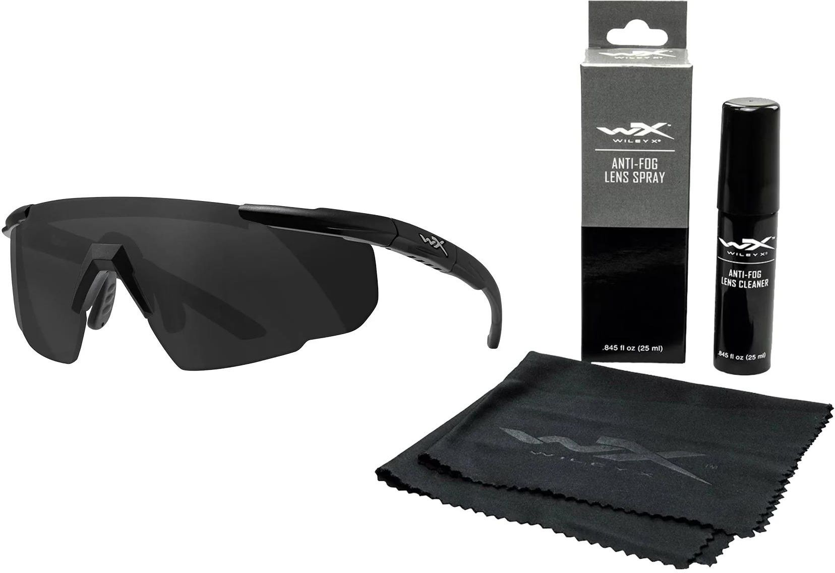 Wiley X Okulary Taktyczne Saber Advanced Set 2In1 Smoke Grey Light Rust Matte Black + Anti-Fog Cleaner Kit Zestaw Niemcza