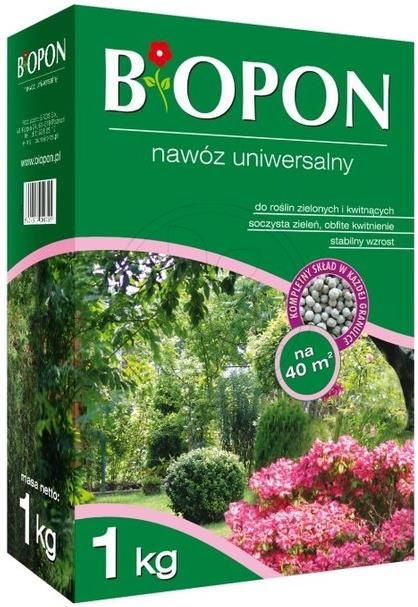 BIOPON NAWÓZ UNIWERSALNY DO KWIATÓW WARZYW KRZEWÓW OWOCÓW DRZEW 10 KG Biopon Nawóz Uniwersalny jest specjalnie zbilansowanym nawozem, zaprojektowanym aby dostarczyć roślinom wszystkie niezbędne składniki odżywcze. Jego składniki odgrywają kluczową rolę w prawidłowym wzroście, kwitnieniu i owocowaniu roślin. Azot (N): Stanowi element budulcowy roślin, niezbędny do syntezy białek i wzrostu. Fosfor (P): Wpływa na prawidłowy rozwój korzeni oraz procesy metaboliczne, wspierając zdrowy wzrost. Potas (K): Odpowiada za regulację procesów fizjologicznych w roślinach, zwłaszcza procesy kwitnienia i owocowania. Magnez (Mg): Jest niezbędny do prawidłowej syntezy chlorofilu, co przekłada się na intensywny zielony kolor roślin. Siarka (S): Wspomaga rośliny w procesach przemiany materii i syntezie białek, wpływając korzystnie na ich kondycję. Mikroelementy: Zapewniają roślinom niezbędne pierwiastki śladowe, które są kluczowe dla wielu procesów metabolicznych.Dzięki starannie dobranym proporcjom składników, nawóz ten jest odpowiedni do różnorodnych roślin uprawnych, takich jak kwiaty, warzywa, krzewy i drzewa owocowe. Regularne stosowanie tego nawozu zapewnia roślinom optymalne warunki wzrostu i zdrowy wygląd. Zbilansowany, uniwersalny skład: warzywa, kwiaty, krzewy, drzewa Odpowiedni do różnorodnych roślin uprawnych, w tym kwiatów, warzyw, krzewów i drzew owocowych Wspiera procesy kwitnienia i owocowania Intensywny kolor liści Poprawia kondycję i zdrowie roślin AZOT 12%, FOSFOR 5%, POTAS 10%, MAGNEZ 2%, SIARKA 35%