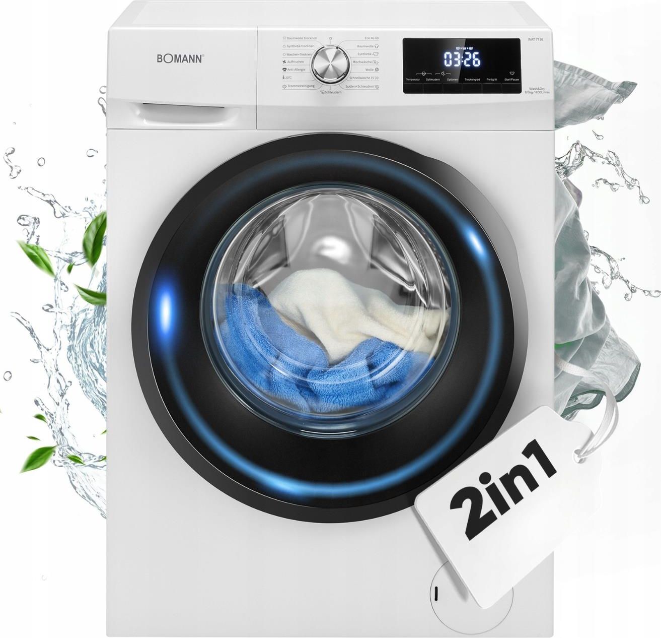 Pralko-suszarka Bomann WAT 7186 Bomann WAT 7186 to nowoczesna, wielofunkcyjna pralko-suszarka, która łączy w jednym urządzeniu skuteczne pranie i szybkie suszenie. Dzięki dużej pojemności — 8 kg dla prania i 5 kg dla prania z suszeniem — doskonale sprawdzi się zarówno w codziennym użytkowaniu, jak i w intensywnie eksploatowanych gospodarstwach domowych. Solidna konstrukcja, cicha praca i szeroki wybór programów gwarantują maksymalny komfort oraz idealne efekty pielęgnacji tkanin. Urządzenie oferuje 15 programów prania i suszenia oraz liczne funkcje dodatkowe, takie jak pranie wstępne czy dodatkowe płukanie. Możliwość regulacji prędkości wirowania (od 400 do 1400 obr./min) i temperatury (zimna – 90°C) pozwala na precyzyjne dopasowanie cyklu do rodzaju tkanin. Dzięki funkcji automatycznego suszenia oraz suszenia czasowego (30–240 min) zawsze uzyskasz idealnie suche i świeże ubrania. Pralko-suszarka wyposażona została w czytelny wyświetlacz LED z kontrolkami stanu, programator czasowy (1–24 h) i wskazanie pozostałego czasu. Wysoki poziom bezpieczeństwa zapewniają funkcje: blokady rodzicielskiej, ochrony przed przepełnieniem, kontroli przegrzania, regulacji piany i zabezpieczenia przed niezrównoważeniem wsadu. Bęben ze stali nierdzewnej o pojemności 54 litrów gwarantuje długą żywotność i dbałość o tkaniny. 10 lat gwarancji na silnik – niezawodność na lata Trwałość potwierdzona gwarancją Silnik pralko-suszarki Bomann WAT 7186 został zaprojektowany z myślą o długotrwałej, bezawaryjnej pracy. Producent udziela aż 10 lat gwarancji na jego trwałość i wydajność, co potwierdza wysoką jakość wykonania oraz zaufanie do technologii Bomann. Najważniejsze cechy Kolor: biały Pojemność prania: 8,0 kg Pojemność prania i suszenia: 5,0 kg 15 programów prania i suszenia Opcje dodatkowe: pranie wstępne, dodatkowe płukanie Prędkość wirowania: do 1400 obr./min (regulacja 1400–400 obr./min + stop wirowania) Zakres temperatur: zimna / 20 / 30 / 40 / 60 / 90°C Funkcje suszenia: automatyczne + czasowe (30–240 min) Wyświetlacz LED z kontrolkami i programatorem czasowym (1–24 h) Wskaźnik pozostałego czasu programu Blokada rodzicielska, kontrola piany i niezrównoważenia Automatyczna kontrola temperatury i obrotów bębna Ochrona przed przegrzaniem i przelaniem wody Bęben ze stali nierdzewnej (54 l) z dużym otworem 34 cm / 135° Regulowane nóżki i zabezpieczenie węża dopływowego Zasilanie: 220–240 V~ / 50 Hz | 1750 W | 10 A Poziom hałasu: 74 dB Programy prania – Bomann WAT 7186 Bawełna (Baumwolle) Skuteczne pranie codziennej odzieży, pościeli i ręczników. Gwarantuje głęboką czystość i świeżość nawet przy pełnym załadunku. Eco 40–60 Program energooszczędny, który optymalizuje zużycie wody i prądu, zapewniając doskonałe rezultaty prania. Idealny do codziennej odzieży. Syntetyczne (Synthetik) Delikatny cykl dla ubrań z włókien syntetycznych i sportowych. Chroni materiały przed deformacją i zagnieceniami. Mieszane tkaniny (Mix) Umożliwia pranie różnych rodzajów tkanin w jednym cyklu — bez potrzeby sortowania ubrań. Wełna (Wolle) Specjalny, łagodny program do swetrów i odzieży wełnianej. Chroni włókna przed kurczeniem i filcowaniem. 20°C (zimna woda) Ekologiczny program do odświeżania lekko zabrudzonych ubrań. Pozwala prać w niskiej temperaturze, oszczędzając energię. Szybkie pranie 15 min (Schnellwäsche 15’) Idealne, gdy potrzebujesz czystych ubrań w ekspresowym tempie. Doskonałe do szybkiego odświeżania odzieży. Płukanie + Wirowanie (Spülen + Schleudern) Dodatkowe płukanie z odwirowaniem — idealne po ręcznym praniu lub dla alergików, gdy chcesz dokładnie wypłukać detergent. Wirowanie (Schleudern) Samodzielne wirowanie — skutecznie usuwa nadmiar wody, skracając czas suszenia. Antyalergiczny / Parowy (Anti-Allergie / Dampf) Cykl z użyciem pary wodnej, który usuwa bakterie, roztocza i alergeny. Idealny dla osób z wrażliwą skórą i rodzin z dziećmi. Czyszczenie bębna (Trommelreinigung) Program konserwacyjny — usuwa osady, kamień i resztki detergentu, utrzymując wnętrze urządzenia w czystości. Programy suszenia – Bomann WAT 7186 Bawełna – automatyczne suszenie (Baumwolle Trocknen) Program dopasowuje czas i temperaturę do wsadu z bawełny. Ubrania po cyklu są miękkie, suche i gotowe do złożenia. Syntetyki – automatyczne suszenie (Synthetik Trocknen) Delikatne suszenie tkanin syntetycznych — idealne dla odzieży sportowej i technicznej, chroni włókna przed przegrzaniem. Pranie + Suszenie (Waschen + Trocknen) Pełny cykl 2w1 — od prania do całkowicie suchych ubrań bez konieczności wyjmowania wsadu. Wygoda i oszczędność czasu. Extra suche (Extra Trocken) Ubrania po cyklu są całkowicie suche — można je od razu schować do szafy. Suche do szafy (Schranktrocken) Standardowy poziom suszenia, pozostawiający tkaniny miękkie i przyjemne w dotyku. Wilgotne do prasowania (Bügelfeucht) Zatrzymuje niewielką wilgoć w tkaninach, ułatwiając prasowanie i wygładzanie odzieży. Program czasowy (Zeit Trocknen) Umożliwia ręczne ustawienie długości suszenia w zakresie 30–240 minut. Idealny do małych wsadów lub dodatkowego dosuszenia ubrań po krótszym cyklu. Dane eksploatacyjne Zużycie energii / 100 cykli (pranie + suszenie): 266 kWh Zużycie wody / cykl (pranie + suszenie): 80 l Zużycie energii w trybie czuwania: 0,49 W Zużycie energii przy opóźnionym starcie: 3,70 W Dane zgodne z rozporządzeniem UE nr 2019/2014 Klasa energetyczna (pranie): A Klasa energetyczna (pranie i suszenie): D Najważniejsze funkcje pralko-suszarki Bomann WAT 7186 2w1 – pranie i suszenie w jednym urządzeniu Oszczędność miejsca i czasu – jedno urządzenie pierze i suszy ubrania, bez konieczności przekładania wsadu. Duża pojemność: 8 kg prania / 5 kg suszenia Idealna dla rodzin – mieści pełne pranie pościeli, r