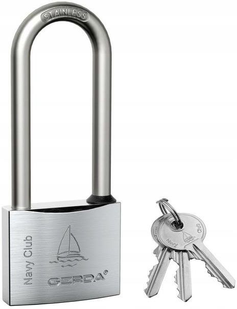 NAVY CLUB 50 Kłódka nierdzewn wydł pałąk 0KCP0NC50 NAVY CLUB 50 Kłódka nierdzewn wydł pałąk 0KCP0NC5080.99230B Szerokość korpusu kłódki (w mm): 50Rozstaw jarzma: 27.8Wysokość korpusu kłódki (w mm): 40.5Wysokość trzpienia: 75,5Średnica jarzma/trzpienia: 8Kłódki wykonane z materiałów odpornych na warunki atmosferyczne o wysokich właściwościach antykorozyjnych. Kłódki wykonane z materiałów o wysokiej odporności na warunki atmosferyczne. Kłódki o wysokich właściwościach antykorozyjnych. Korpus nierdzewny, pokryty galwanicznie w kolorze chrom błyszczący. Pałąk ze stali hartowanej nierdzewnej, chromowany. Obustronne ryglowanie pałąka. Zamknięcie typu zatrzaskowego. Specyfikacja technicznaSzerokość korpusu kłódki (w mm) : 50Rozstaw jarzma : 27.8Wysokość korpusu kłódki (w mm) : 40.5Wysokość trzpienia : 75,5Średnica jarzma/trzpienia : 8Materiał korpusu : Mosiądz niklowanyMateriał uchwytu : Stal nierdzewnaKolor : SrebrnyWodoszczelny : NieOdporność na korozję : TakRodzaj zamknięcia : Na kluczIlość kluczy : 3Rodzaj klucza : Płaski ząbkowanyOsłona jarzma : NiePodwójny zaczep : Tak 5902203302859 020519