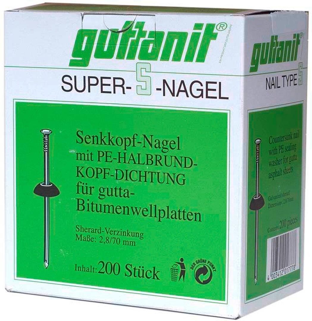 GUTTA Gwoździe brązowe (200 szt.) Ral 8017 Marka Gutta SeriaGuttanitZastosowanieMocowanieIlość sztuk w opakowaniu200 szt.Długość13 cmSzerokość7,5 cmWysokość14 cmKod EAN4003412038087SzczegółyGwoździe do płyt bitumicznych to wytrzymałe, precyzyjnie wykonane akcesoria montażowe. Produkt pochodzi z serii Gutta Guttanit i jest przystosowany do montażu falistych arkuszy bitumicznych. Płyty bitumiczne mają szerokie zastosowanie - mogą służyć jako pokrycie dachów, wiat oraz różnego typu drewnianych konstrukcji. Pokrycie jest odporne na działanie wilgoci, promieniowania UV oraz zmiennych warunków atmosferycznych. Gwoździe GUTTA umożliwiają sprawny, precyzyjny montaż płyt. Mocowanie jest proste i nie wymaga użycia specjalistycznych narzędzi. Prezentowany model gwoździ ma wymiary 130 x 140 x 75 mm i jest dostępny w zestawach po 200 sztuk. 4003412038087 011199