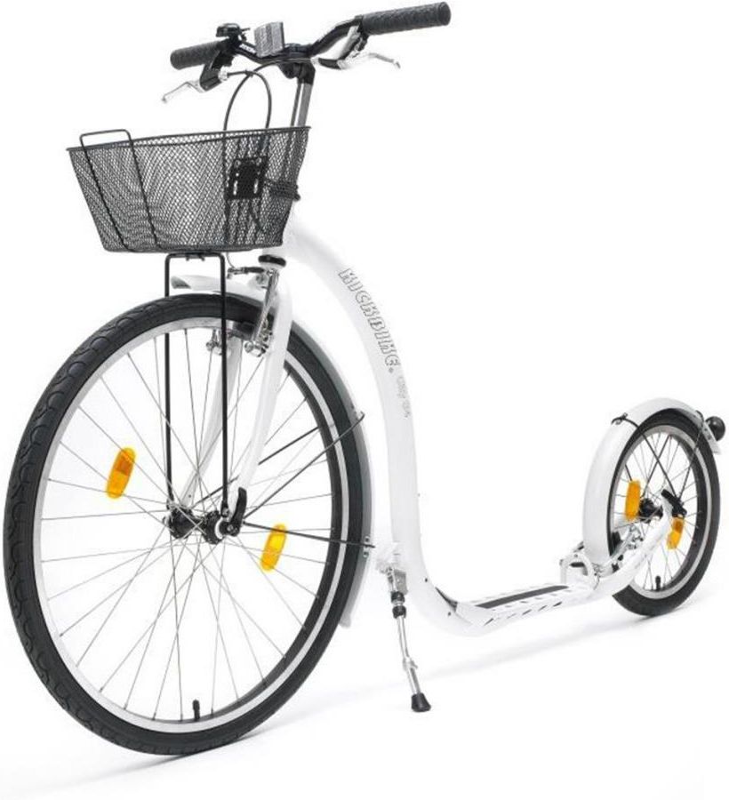Hulajnoga Kickbike City G4 zaprojektowana dla dzieci powyżej lat 8. Dzięki sporej tolerancji na wagę użytkownika (120 kg), będzie również odpowiednia dla osób dorosłych. Wyposażona w duże przednie i mniejsze tylne koło, będzie znacznie szybsza od tradycyjnych z niewielkimi kółeczkami, sprawdzi się również lepiej na nierównej powierzchni i żwirze, a także na asfalcie. Luksusowy sprzęt wyposażono w koszyk, dzwonek, nóżkę, błotniki i zestaw narzędzi. Podnóżek i kierownica mają regulowaną wysokość. Kompaktowe rozmiary sprawią, że sprawdzi się w przyczepie kempingowej, gdyż będzie prosta w transporcie. Doskonała do wykorzystania przez pracowników dużych magazynów, lotnisk, czy dworców.