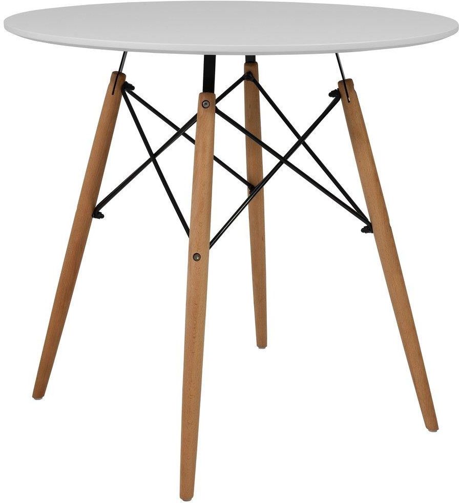 Nowoczesny stolik kawowy wykonany w stylu skandynawskim, przeznaczony do samodzielnego, prostego montażu. Posiada stabilny stelaż malowany metodą proszkową, nogi z drewna bukowego oraz blat z płyty MDF w kolorze białym.