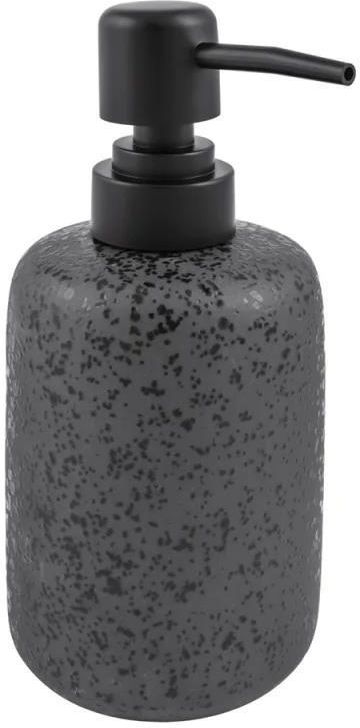 Dozownik łazienkowy do mydła w płynie 350 ml stojący czarny szary elegancki kamionka Dozownik do mydła w płynie z serii Hades ma pojemność 350 ml i jest wykonany z kamionki w ciemnym, matowym antracycie. Jego powierzchnia zdobiona jest nieregularnymi, czarnymi plamkami, co nadaje mu unikalny …