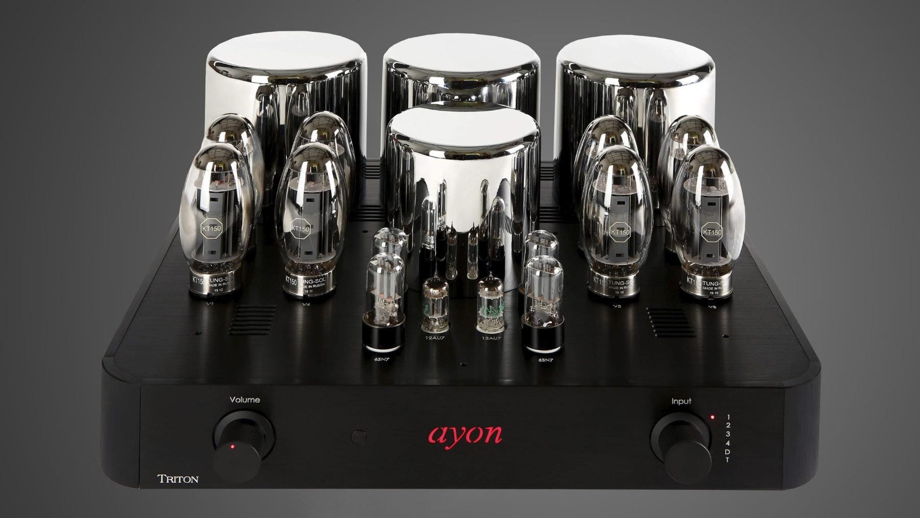 Ayon TRITON EVO wzmacniacz zintegrowany lampowy Dane techniczne Ayon TRITON EVO • Typ układu: trioda lub pentoda, czysta klasa A • Lampy wyjściowe: 8 × KT150 • Impedancja obciążenia: 4-8 Ω • Moc wyjściowa: 2 × 120 W • Pasmo przenoszenia: 8 Hz - 60 kHz • Impedancja wejściowa (1 kHz): 100 kΩ • NFB: …