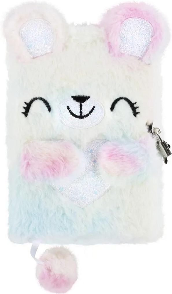 Pamiętnik pluszowy z kłódką Miś DERFORM DERFORM ✅ ✔️ Subtelny pamiętnik utrzymany w pastelowych kolorach z odcieniem białego. Na okładce jest puchaty miś z przyszytymi łapkami i haftem w kształcie serduszka, a bezpieczne zamknięcie na kłódkę chroni wszystkie sekrety zapisane w środku. Doskonały …