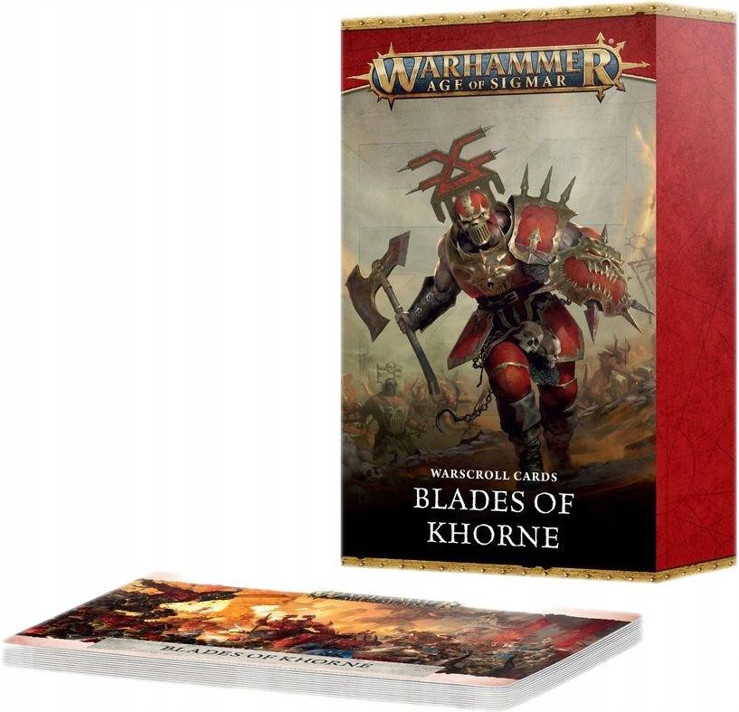 WARHAMMER AGE OF SIGMAR WARSCROLL CARDS BLADES OF KHORNE PRE-ORDER ENG PRE-ORDER WYSYŁKA PO 02.08.2025 WERSJA ANGIELSKA Blades of Khorne ruszają na wojnę w krwawej, szaleńczej furii. Od pianotocznych kultystów po obłąkane demony – wszyscy są bezwzględnymi mordercami, których jedynym celem jest …