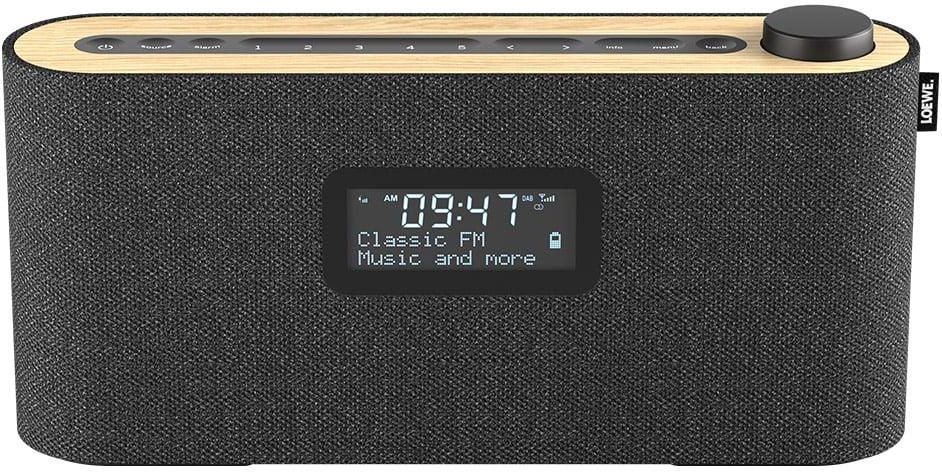 Radio LOEWE DAB+ radio.frequency basalt grey Stereofoniczne radio z FM, DAB+, EWF i Bluetooth 28 W całkowitej mocy muzycznej Przyciemniany wyświetlacz, funkcja alarmu i drzemki USB-C z ładowarką sieciową i do 14 godzin pracy na baterii Przenośny, lekki i wytrzymały Dębowe wstawki na górnej i dolnej krawędzi TESTOWANY