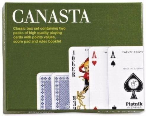 Karty do gry w kanastę od Piatnika w stylu New Classic W zestawie otrzymujesz 2 kompletne talie do gry w kanastę ze specyfikacją punktów w języku angielskim. Dodatkowo, w ramach komplecie znajduje się również notes, który ułatwi zapisywanie zdobytych punktów. Produkty od wiedeńskiej firmy Ferd. Piatnik & Sohne znane są na całym świecie od 1824 roku, od kiedy to zdobywają uznanie swoich użytkowników dzięki zróżnicowanym, pięknym wzorom i wyśmienitej jakości wykonania. Twój komfort gry w tradycyjne karty - gwarantowany! EAN: 9001890255533