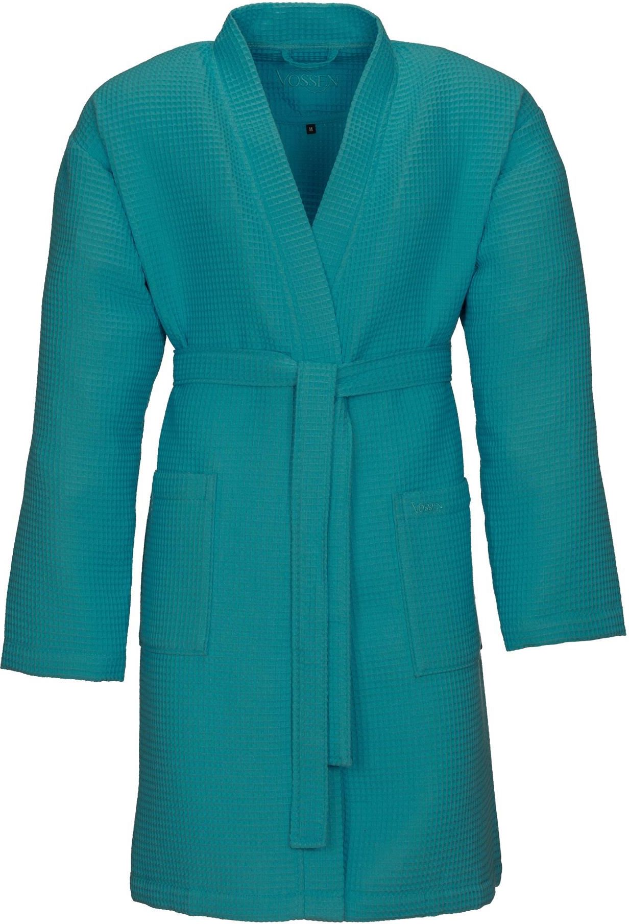 Bawełniany szlafrok unisex, doskonały zarówno dla kobiet, jak i mężczyzn. Jego gofrowa struktura znakomicie się prezentuje. Szlafrok jest lekki a zarazem ciepły. Szybko wysycha. Pasek pozwala na swobodna regulację i dopasowanie do wysokości. Szlafrok świetnie sprawdza się w domu, na basenie czy fitness. Materiał: 100% bawełna Wymiary dla poszczególnych rozmiarów: XS : 32/34 biust/pachy 51 cm x 2, biodra 49 cm x 2, długość 99 cm S : 36/38 biust/pachy 54 cm x 2, biodra 52 cm x 2, długość 100 cm M : 40/42 biust/pachy 60 cm x 2, biodra 58 cm x 2, długość 101 cm L : 44/46 biust/pachy 62 cm x 2, biodra 60 cm x 2, długość 102 cm XL : 48/50 biust/pachy 64 cm x 2, biodra 66 cm x 2, długość 103 cm XXL : 52/54 biust/pachy 69 cm x 2, biodra 71 cm x 2, długość 104 cm Działająca w austriackim Jenesdorfie marka Vossen już od 1925 roku pracuje na zaufanie klientów produkując tekstylia łazienkowe najwyższej jakości. Wszelkie produkty Vossen są sprawdzane pod kątem dermatologicznym, by bez problemowo mogły z nich korzystać zarówno dzieci, jak i osoby cierpiące na alergię. Ponadto, aż 30 procent produktów marki tworzonych jest z bawełny organicznej – pozyskiwanej z ekologicznych i certyfikowanych upraw. Postępowe działanie i dbałość o klientów ugruntowały pozycję marki Vossen na rynku tekstylnym. Informacje dodatkowe: 30% ludzi cierpi z powodu podrażnień skóry i alergii. Powszechne są różne rodzaje raka skóry. Z tego powodu wszystkie produkty marki Vossen są testowane medycznie i w 100% wolne od zanieczyszczeń. Produkty tej marki od 2010 roku posiadają aprobatę „Towarzystwa Promocji Tekstyliów Tolerujących Skórę”.