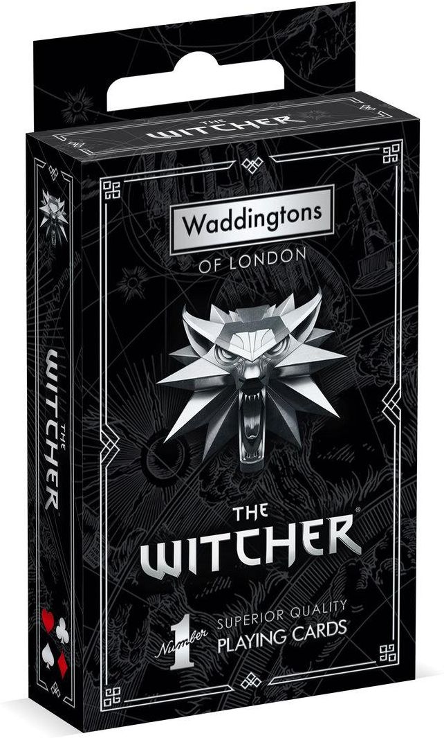 WADDINGTONS NO.1 Wiedźmin Wejdź do świata wiedźmińskich przygód z unikalną talią kart inspirowaną kultową sagą! Każda karta to małe dzieło sztuki od majestatycznych władców kart po mistyczne figury z wiedźmińskiego uniwersum.