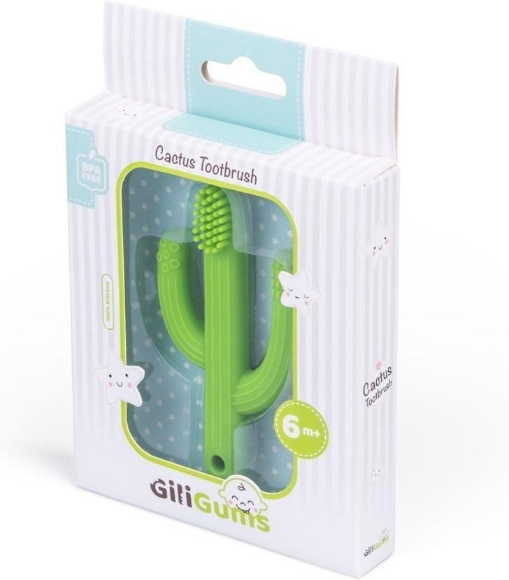 Silikonowy kaktus czyści pierwsze ząbki i masuje dziąsła maluszka. Kształt szczoteczki dostosowany jest do rączki dziecka, a jej faktura zapobiega wyślizgiwaniu się. Soczysty zielony kolor i oryginalny kształt z pewnością przypadną do gustu ząbkującym maluchom. Produkt przeznaczony dla dzieci od 6 miesiąca życia. Cechy produktu wypustki do masowania dziąseł zróżnicowane faktury delikatnie czyści pierwsze ząbki wykonany z silikonu wiek: 6m+ Ostrzeżenia: Produkt przeznaczony dla dzieci od 6 miesiąca życia.