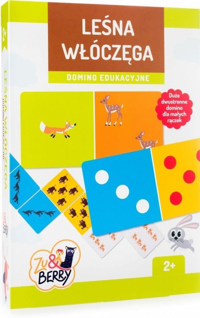 CZAS NA WSPÓLNE UKŁADANIE I LICZENIE! Leśna włóczęga. Domino edukacyjne to gra logiczna w dwóch wariantach: domino przyrodnicze – dla młodszych matematyczne – dla starszych. W trakcie gry dzieci ćwiczą koncentrację, myślenie logiczne i analityczne, uczą się liczyć, a także rozwijają zdolności manualne i poznają żyjące w ich sąsiedztwie gatunki zwierząt. Polecana przez psychologów dla dzieci od 2 roku życia. Zasady gry: • Zdecyduj, w którą wersję domina zagrasz • Odwróć kafle odpowiednio oczkami lub zwierzętami do spodu • Wylosuj 8 kafli • Gracz, który jako ostatni widział lisa, wykłada pierwszy kafel i dobiera kolejny, by stale mieć ich w ręce 8 • Następny gracz dokłada kafel, dopasowując odpowiednie symbole • Jeśli nie masz pasującego kafla, dobierasz ze wspólnej puli do skutku • Wygrywa ten, kto najszybciej pozbędzie się wszystkich kafli Cechy gry: • Wielkie domino dla małych rączek • Dwa warianty gry – matematyczne dla starszych, obrazkowe dla młodszych • Nauka liczenia przez zabawę • Zachęta do leśnych wypraw i wypatrywania mieszkających tam zwierząt • Atrakcyjne, duże pudełko z niespodzianką graficzną • Wykonane z materiałów bezpiecznych dla dzieci poniżej 3 roku życia. Zawartość opakowania:• 28 kafli 80x160 mm, instrukcja. Wymiary pudełka: 43x213x313 mm. Informacje o grze: • Wiek: 2+ • Liczba graczy: 2-4 • Czas: 15 minut Opakowanie: pudełko