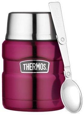 Termos obiadowy Thermos King Food Jar malinowy 0,47 L Kod produktu: 173027 Thermos® King Food Jar 0,47 L to wysokiej jakości termos obiadowy o doskonałych parametrach termicznych. Główny korpus wykonany jest w dwuściennej konstrukcji próżniowej z wysokiej jakości stali nierdzewnej zarówno od strony zewnętrznej jak i wewnętrznej. Szeroki wlew zapewnia łatwe i wygodne użytkowanie oraz konserwację a także umożliwia spożywanie posiłków bezpośrednio z termosu. Termos wyposażony jest w szczelną zakrętkę z uszczelką, zewnętrzną nakrętkę, stanowiącą jednocześnie kubek lub miseczkę oraz składaną łyżkę. Zewnętrzna nakrętka ma wykończenie ze stali nierdzewnej od strony zewnętrznej, natomiast od wewnątrz jest to odporne tworzywo, wolne od BPA. Łyżka w pozycji złożonej ma swoje specjalnie wyprofilowane miejsce na górnej części zakrętki. Thermos® King Food Jar 0,47 L przy odpowiednich zaleceniach osiąga wysokie właściwości izolacyjne. Sprawdzi się idealnie do pracy czy też na całodniowe eskapady plenerowe podczas których chcemy posilić się ciepłym posiłkiem. Niewątpliwym atutem marki Thermos® jest też bardzo estetyczny i nowoczesny, dopracowany w detalu wygląd dzięki czemu będzie wspaniałym pomysłem na prezent dla każdego podróżnika. Szczegóły Thermos® King Food Jar 0,47 L: dwuścienny próżniowy korpus wykonany z najwyższej jakości stali nierdzewnej szeroki wlew umożliwia przechowywanie produktów o większych gabarytach, jak również jedzenie bezpośrednio z pojemnika przykrywka termosu może być wykorzystywana jako kubek lub miska składana łyżka w zestawie szczelna zakrętka z uszczelką łatwy w utrzymaniu czystości, higieny wewnętrzna powierzchnia zapobiegająca nagromadzeniu się osadów i zabrudzeń BPA free niewielka waga i najwyższe parametry termoizolacji kompletna oferta części wymiennych nie należy myć w zmywarce trzyma gorąco: 9 godzin dla cieczy** trzyma zimno: 14 godzin dla cieczy** ** Osiągi termiczne deklarowane przez producenta. Mierzony jest czas, w którym temperatura napoju zmieni się z początkowej do końcowej wartości, w warunkach w których temperatura otoczenia wynosi 20 °C. Przy pomiarach utrzymywania ciepła początkowa temperatura 95 °C., końcowa 49 °C. Przy pomiarach utrzymywania zimna początkowa temperatura 1 °C., końcowa 13 °C. Mierzenie wydajności izolacyjnej jest przeprowadzane z użyciem czystej wody. Czas, w którym zawartość termosu pozostaje ciepła/zimna, zależy od pojemności cieplnej danego posiłku. Można powiedzieć, że im więcej wody zawiera dany pokarm, tym wyższa jest jego pojemność cieplna i tym dłużej wytrzyma w termosie ciepły/zimny. Na przykład kaszka wytrzyma dłużej ciepła/zimna niż ryż. Dlatego posiłki zalecane do termosu to zupy, jedzenie papkowate, przekąski czy sałatki owocowe. Czas, w którym posiłek pozostanie ciepły/zimny, można przedłużyć podgrzaniem/ochłodzeniem termosu. Specyfikacja Materiał: stal nierdzewna Wykończenie: błyszczące Waga termosu wraz z łyżką: 395 g Pojemność: 0,47 L Średnica: Ø 95 mm Średnica ujścia: Ø 70 mm Wysokość: 143 mm Kolor: malinowy Instrukcja Producent: Thermos Materiał: stal nierdzewna Pojemność: 0,47 L Waga: 395 g Wymiary: Ø95 x 143 mm Kolor: malinowy