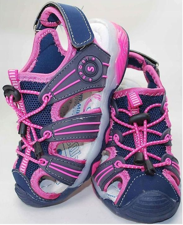 ZABUDOWANE SANDAŁY DLA DZIEWCZYNKI GRANATOWO-RÓŻOWE Z WKŁADKĄ ZE SKÓRY NATURALNEJ ROZMIAR 30 Nieszawa