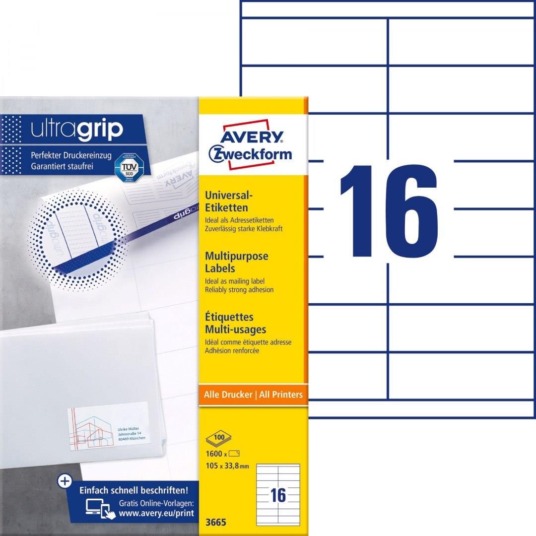 Avery Zweckform Etykiety Uniwersalne Trwałe 105 X 33,8 Mm, 16 Etykiet/A4 Nisko