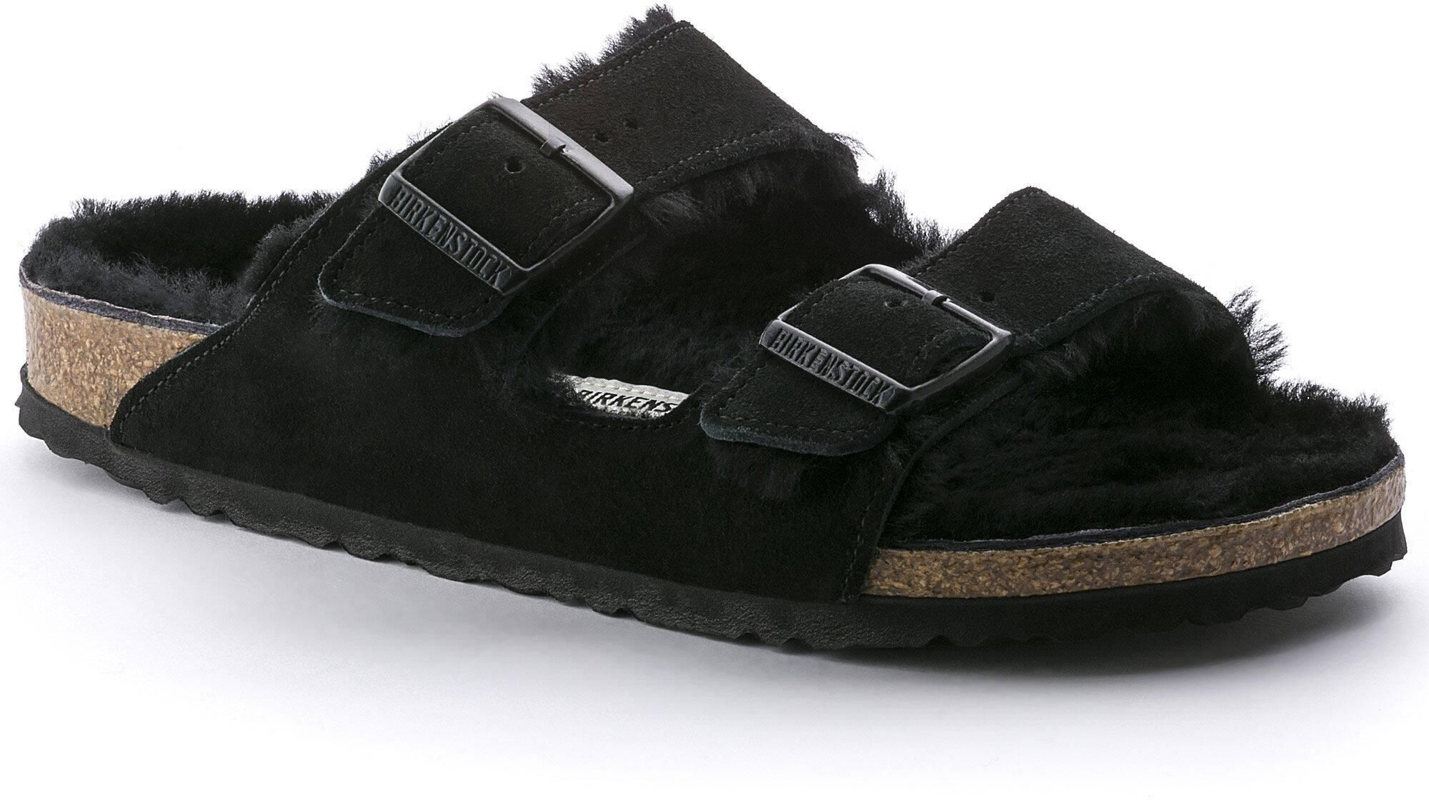 Klapki damskie ocieplane z wełną owczą Birkenstock Arizona VL Shearling Black skóra zamszowa regular szerokie (0752661) Nisko