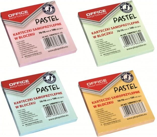 Office Products Karteczki Samoprzylepne , 76X76Mm, Pastelowe, 1X100K. Kolor: Różowy Nisko