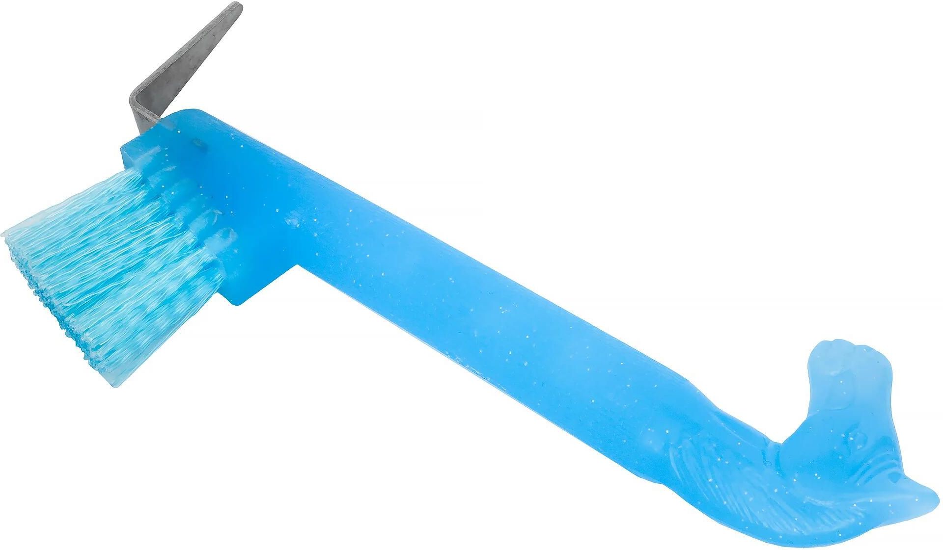 Kopystka dla konia ze szczotką START GlitterHead niebieska Kopystka ze szczotką START GlitterHead to wyjątkowe narzędzie, które łączy praktyczność z oryginalnym stylem. Kopystka wykonana jest z trwałego, elastycznego plastiku, a jej neonowy kolor jest dodatkowo naszpikowany drobinkami brokatu, co dodaje jej wyjątkowego blasku i wyróżnia ją wśród standardowych akcesoriów jeździeckich. Wyposażona w solidną, metalową końcówkę do czyszczenia kopyt oraz w miękką szczotkę, idealną do usuwania brudu i kamieni z kopyt konia. Ergonomicznie zaprojektowana rękojeść z motywem głowy konia na końcu jest nie tylko atrakcyjna wizualnie, ale również zapewnia pewny i komfortowy chwyt.
