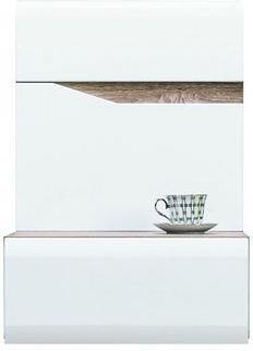 Szafka nocna LIONEL LI-15 jest szafką wisząca. System LIONEL onieśmiela swą nowoczesnością. Połączenie białego dekoru wraz z dębem sonoma truflowym stanowi najsilniejszy punkt kolekcji LIONEL. Oryginalna forma, futurystyczne wzornictwo tworzy niezastąpioną kolaborację z frontami wykonanymi z płyty MDF oklejonej folią PCV z podfrezowaniami tworzącymi wygodne uchwyty. Korpusy zostały wykonane z wysokiej jakości płyty wiórowej laminowanej odpornej na zabrudzenia oraz zarysowania. Prowadnice szuflad są zintegrowane z systemem hamowania, zaś hamulce do drzwi zostały zamontowane w zawiasach. Stonowany design kolekcji LIONEL sprawia, że system doskonale wpasowuje się w każde wnętrze. Produkt posiada wiele wariantów.