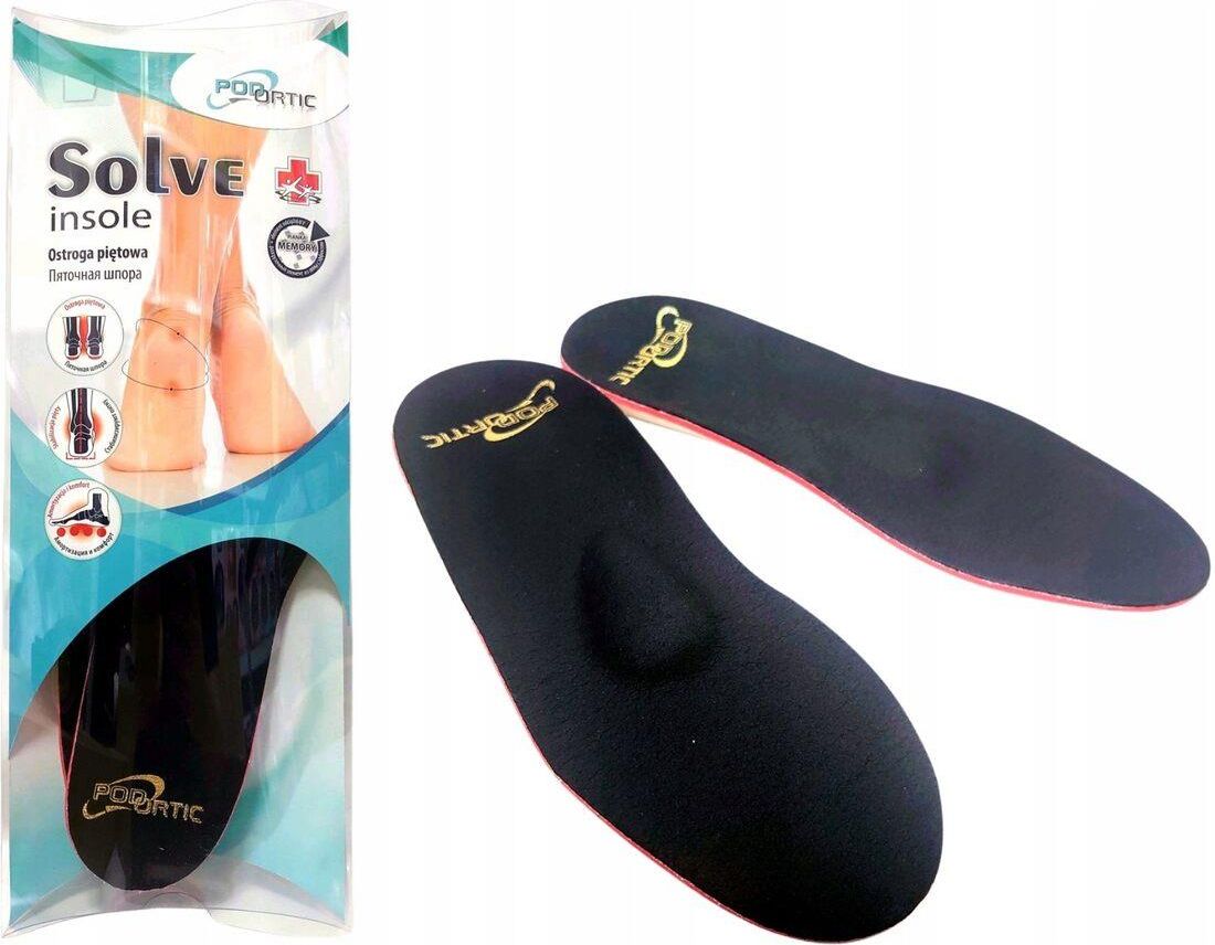 Wkładki Ortopedyczne SOLVE INSOLE na Ostrogi PiętoweWkładki ortopedyczne SOLVE INSOLE zostały zaprojektowane, aby przynieść ulgę osobom cierpiącym na ostrogi piętowe. Dzięki pełnemu wsparciu, odciążeniu tyłostopia i amortyzacji, wkładki te zapewniają komfort podczas chodzenia. Warstwa z pianki żelowej intensywnie pochłania wilgoć, co gwarantuje suchość i świeżość. Idealne do każdego rodzaju obuwia.Najważniejsze właściwości produktu: Pełne Wsparcie: Profilowane wkładki z elementem stabilizującym Odciążenie Tyłostopia: Skracają rozcięgno podeszwowe, zapewniając komfort Pochłanianie Wilgoci: Środkowa warstwa z pianki żelowej absorbuje wilgoć Najważniejsze korzyści: Redukcja Bólu: Miękki krążek pod piętą odciąża ostrogę piętową Wsparcie dla Śródstopia: Pelota w śródstopiu podpiera sklepienie poprzeczne Amortyzacja: Materiały pokryciowe absorbują siły nacisku podczas chodzenia Specyfikacja: Materiały: Mikroabsorb, pianka żelowa, element odciążający z pianki memory, pelota, profil z masgumii Zawartość: 1 para wkładek Dla Kogo: Osoby z dolegliwościami bólowymi pięt spowodowanymi ostrogą piętową FAQ: Q: Czy wkładki można stosować w każdym typie obuwia? A: Tak, są przeznaczone do każdego rodzaju obuwia. Q: Czy wkładki można prać? A: Zaleca się ręczne mycie i suszenie w temperaturze pokojowej.
