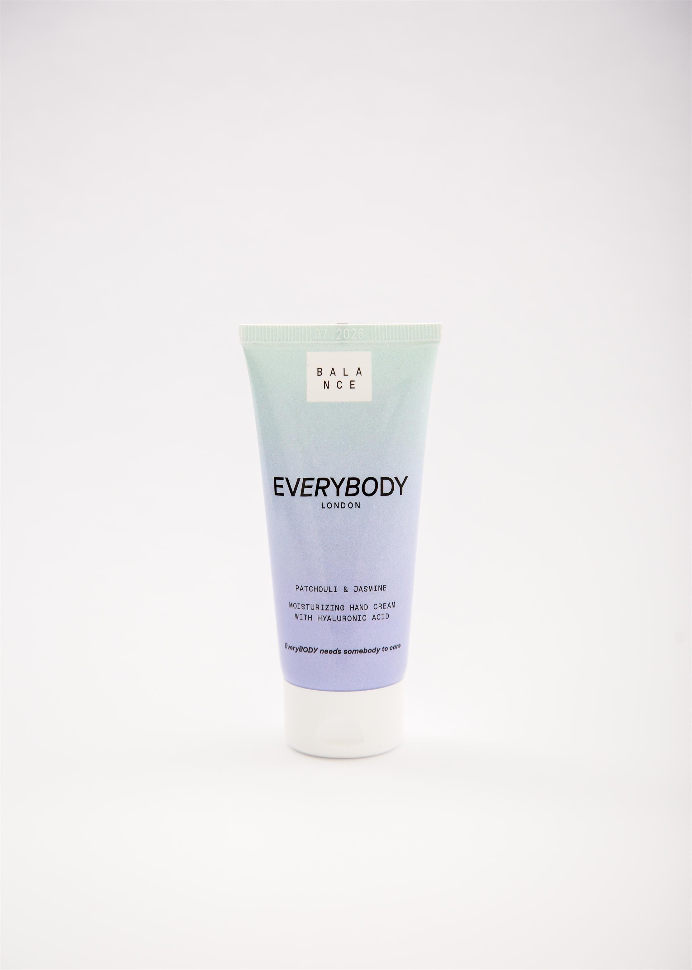 EVERYBODY Balance Nawilżający Krem do Rąk 50ml Nawilżający krem do rąk z serii Balance od marki Everybody. Kosmetyk dedykowany jest dla każdego rodzaju skóry. Doskonale nawilża, odżywia i pielęgnuje suchą skórę dłoni. Kosmetyk delikatnie natłuszcza skórę dłoni i pozostawia ją jedwabiście gładką. Bardzo szybko się wchłania i nie pozostawia na dłoniach tłustego filmu. Jest przyjemny w aplikacji i pozostawia przyjemny zapach Patchouli i Jasminu. Pojemność: 50ml Seria: Balance