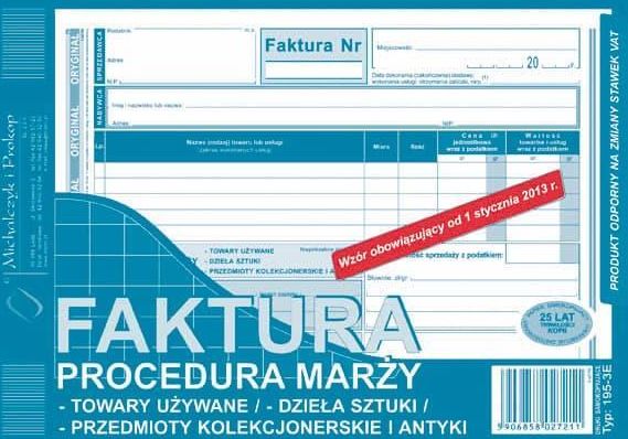 Faktura - Procedura Marży - Towary Używane, Dzieła Sztuki, Przedmioty Kolekcjonerskie I Antyki Nowa Dęba