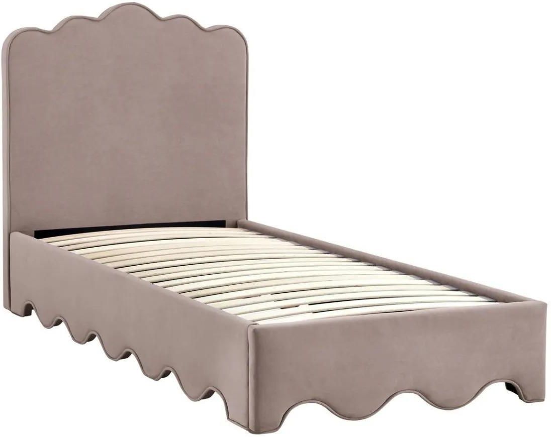 Tapicerowane łóżko pojedyncze ORSO 90x200 dla dziewczynkiZamień pokój swojej małej księżniczki w bajkową krainę dzięki łóżku dziecięcemu ORSO! Ten uroczy mebel w subtelnym, beżowym kolorze został tapicerowany miękką, welwetową tkaniną, która wprowadza ciepło i elegancję do wnętrza. Nasze łóżko to coś więcej niż tylko miejsce do spania – to zaproszenie do magicznego świata snów i wyobraźni. Wezgłowie w kształcie korony dodaje królewskiego charakteru, a delikatne falbanki przy podstawie łóżka podkreślają jego lekki i bajkowy styl.Łóżko pojedyncze ORSO łączy piękny wygląd z wygodą i trwałością. W zestawie znajduje się solidny stelaż, który doskonale podtrzyma materac o wymiarach 90x200 cm. To łóżko stanie się nie tylko ozdobą dziecięcego pokoju, ale też miejscem relaksu, snu i inspirującej zabawy każdego dnia.Cechy produktupojedyncze łóżko dziecięce, łóżko tapicerowane tkaniną velvet w kolorze beżowym,ozdobne wezgłowie imitujące koronę,ozdobne falbanki również na spodzie łóżka,stelaż w zestawie,łóżko sprzedawane bez materaca,rozmiar materacy pasujących do łóżka: 90x200,do samodzielnego montażu,w swojej ofercie posiadamy szeroki wybór mebli pozwalających na kompleksowe wyposażenie mieszkania Łóżko Erin 90 x 200 cmŁóżko Erin to eleganckie i praktyczne rozwiązanie do spania. Długość 216 cm i głębokość 98 cm zapewniają dużo miejsca do odpoczynku na łóżku o wymiarach 90 x 200 cm. Drewniana konstrukcja gwarantuje stabilność i trwałość, a obicie z tkaniny zapewnia przyjemny dotyk i komfort. Łóżko nie ma miejsca do przechowywania, pozostawiając miejsce do innych zastosowań w pokoju. Dzięki nośności do 120 kg jest odpowiednie dla bardziej wymagających użytkowników, a konstrukcja z przednim i tylnym zagłówkiem o wysokości 31 cm i 117 cm nadaje całości nowoczesny i stylowy wygląd. Łóżko zostało zaprojektowane w taki sposób, aby listwy znajdowały się w odległości 2 cm od krawędzi kredensu, co zapewnia twardość i wygodne podparcie materaca.Kluczowe cechy Wymiary łóżka: 90 x 200 cm Nośność: 120 kg Konstrukcja drewniana Pokrycie z tkaniny Wysokość tylnego zagłówka: 117 cm Wysokość bocznego i przedniego zagłówka: 31 cm 5 lat gwarancjiŁóżko Erin to idealny wybór dla osób poszukujących połączenia komfortu, jakości i stylowego designu w jednym meblu. Bez miejsca do przechowywania, ale z naciskiem na wytrzymałość i długotrwałą użyteczność, stanie się niezawodnym partnerem do odpoczynku.