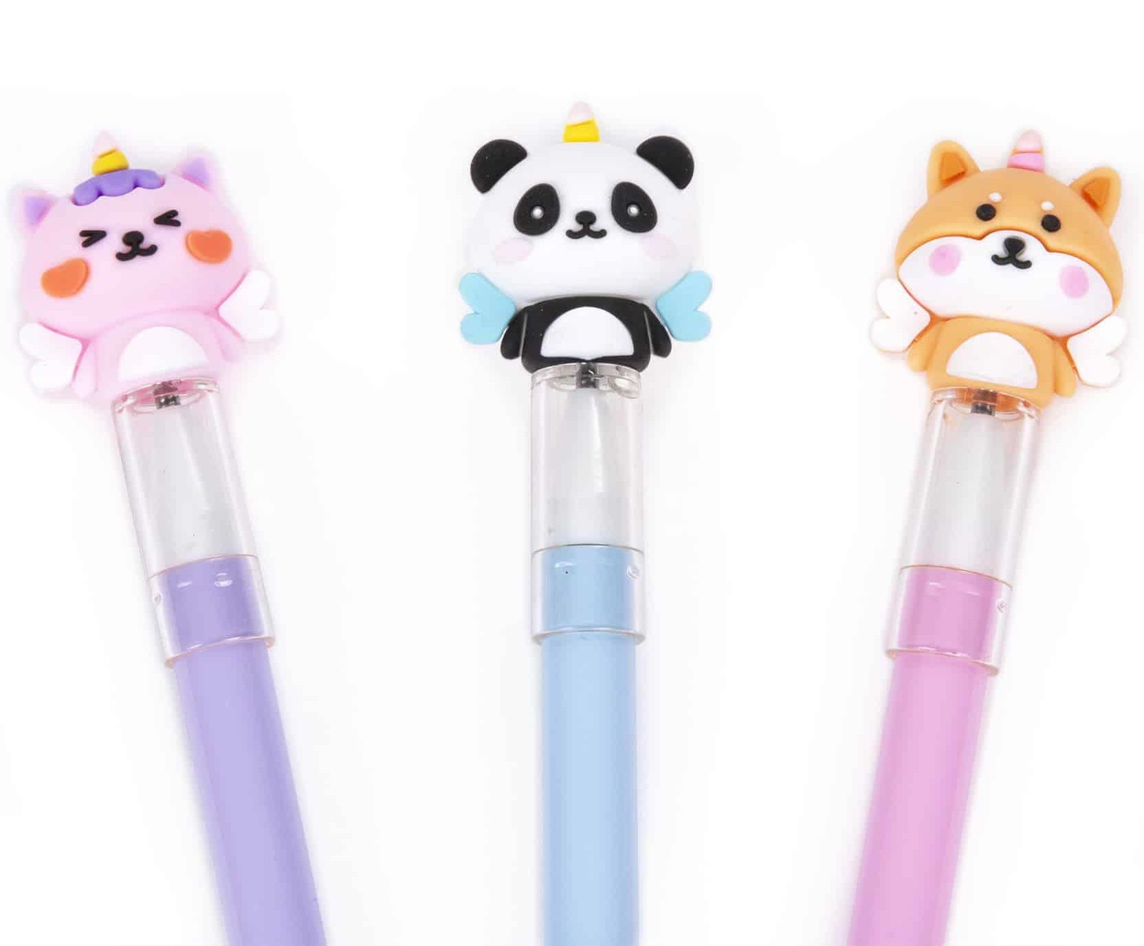 Długopis wymazywalny z figurką w kształcie zwierzaka.Prosimy o informację w komentarzu dla sprzedawcy o wybranym kolorze długopisu. W przypadku braku informacji bądź braku wybranego koloru wysyłamy kolor losowy.Długopis wymazywalny z figurką w kształcie zwierzaka. Zatyczka długopisu ozdobiona słodkim motywem uatrakcyjnia produkt i sprawia, że dzieci czerpią ogromną radość z jego użytkowania. Do wyboru 3 wzory: panda, kotek, lisek. Dodatkowo figurki ozdobione skrzydełkami i rogiem jednorożca. Długopis wymazywalny idealnie sprawdzi się w szkole, a dzięki gumce, znajdującej się na końcu długopisu wymażemy każdy popełniony podczas pisania błąd. Precyzyjna końcówka sprawia, że pisanie nim to czysta przyjemność. wkład niebieski 0,7 wymienny Długopis wymazywalny z figurką w kształcie zwierzaka.Prosimy o informację w komentarzu dla sprzedawcy o wybranym kolorze długopisu. W przypadku braku informacji bądź braku wybranego koloru wysyłamy kolor losowy.