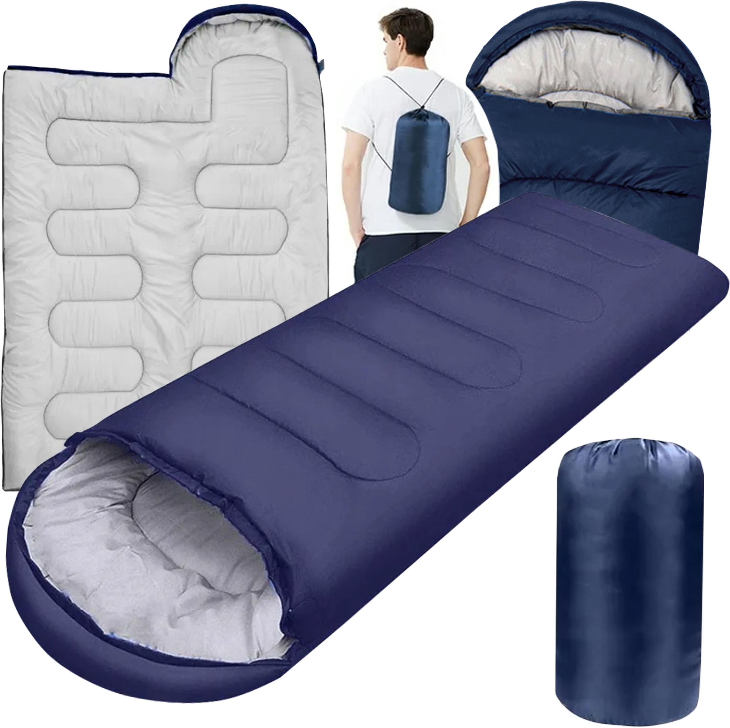 Lewer Śpiwór Turystyczny Mumia Kołdra 210X70 Lekki Ciepły Z Kapturem I Pokrowcem Niebieski Nowa Dęba
