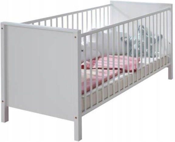 Łóżeczko Łóżko Dziecięce Niemowlęce Ole Białe Łóżeczko OLE 💗 zachwyci prostym wyglądem i kolorem nieskazitelnej bieli, która stworzy radosną i przytulną atmosferę w pokoju niemowlęcym. Mebel zapewni Twojemu dziecku spokojny sen od niemowlaka, aż do malucha. Proste nogi poprowadzone wzdłuż mebla nadają łóżeczku stabilności. Duża powierzchnia do leżenia wyposażona jest w stelaż z listewek, który można regulować i dopasować do wzrostu, wieku i wagi dziecka, w zależności od potrzeb. Ponadto powierzchnia spania zabezpieczona jest z boku białymi, drewnianymi szczebelkami, z których 3 można wyjąć, aby uzyskać łatwy dostęp do malucha. Czarujące, a zarazem eleganckie łóżeczko OLE to doskonały towarzysz Twojego potomstwa! *Do łóżeczka dokupisz również komodę z przewijakiem. *Łóżko sprzedawane bez materaca. Dane techniczne Szerokość [cm]: 76 Wysokość [cm]: 83 Długość [cm]: 147 Materac w zestawie: nie Waga: 29 kg Budowa łóżeczka Korpus: płyta meblowa laminowana / obrzeże ABS. Nóżki: płyta oklejona melaminą. Cechy charakterystyczne: nogi poprowadzone wzdłuż wysokości brył. Kolor: biały. Czym charakteryzują się meble z kolekcji Ole + Bogaty wybór regałów i witryn z przeszklonymi drzwiczkami to cechy kolekcji Ole. + Opcjonalne oświetlenie w strefach witrynowych zwiększa atrakcyjność mebli. + Kolekcja oferuje bardzo funkcjonalną witrynę z przesuwanymi drzwiami. + Nogi poprowadzone wzdłuż wysokości brył nawiązują do tradycyjnego stylu. + Na frontach witryn zastosowano szkło hartowane Meble w paczkach do samodzielnego montażu (akcesoria montażowe wraz z czytelną instrukcją w komplecie). Produkt nowy, oryginalnie zapakowany! Poniżej przykładowa aranżacja pokoju dziecięcego z wykorzystaniem kolekcji OLE