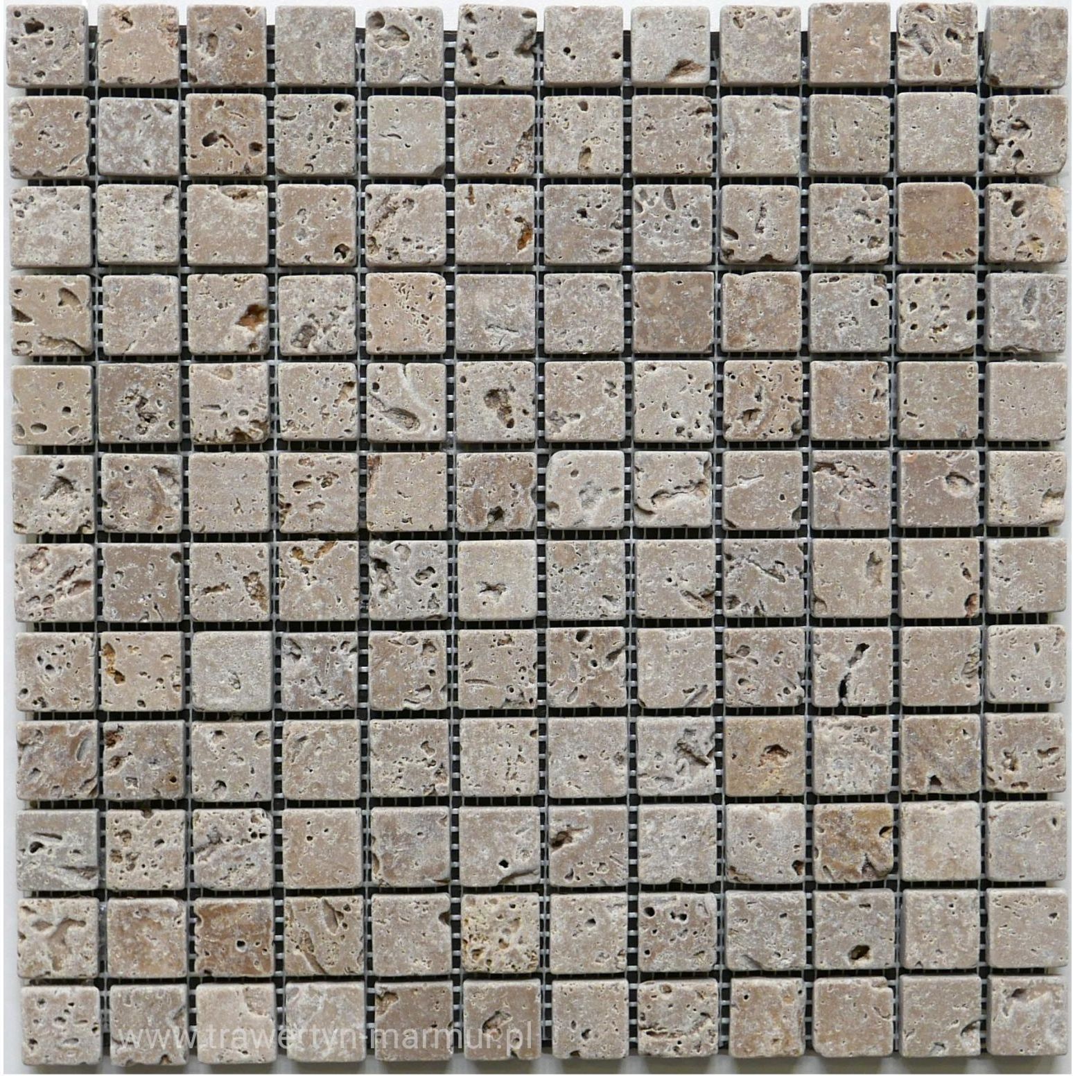 Mozaika kamienna trawertyn Noce Tumbled 2cm x 2cm Kolor: Noce (brąz). Rozmiar plastra: 30,5cm x 30,5cm. Rozmiar pojedynczej kostki: 2cm x 2cm. Grubość: 1cm. Ilość kostek w 1 plastrze: 144. Powierzchnia: niewypełniana. Krawędzie: antykowane (zaokrąglone). Zastosowanie: wewnątrz, podłoga + ściana (łazienka, kuchnia, salon). Kraj pochodzenia: Turcja Cena za jeden plaster 30cm x 30cm.