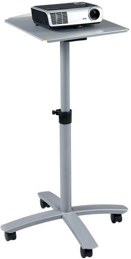 Wytrzymały stolik z półką pod projektor DLP lub LCD wyposażoną w regulację nachylenia oraz możliwość obrotu o 360°, aby zapewnić optymalny dla prezentacji kąt nachylenia. Z regulacją wysokości stolika w zakresie od 81 do 120 cm. regulacja wysokości w zakresie od 810 mm do 1200 mm maksymalne obciążenie półki: 10 kg cztery kółka (2 z blokadą)