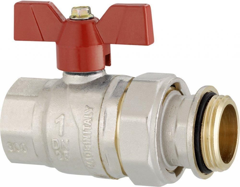 Zawory kulowe do rozdzielaczy 1" Purmo Invest FBWAMVNF34O440P0 zawory kulowe mosiężne niklowane 1” z gwintem wewnętrznym oraz dodatkowym nyplem 1” z ruchomą nakrętką w opakowaniu znajdują się 2 zawory z motylkiem w kolorze czerwonym i niebieskim cena dotyczy całego opakowania (2 zaworów kulowych) UWAGA: Zawory nie pasują do innych rozdzielaczy Purmo