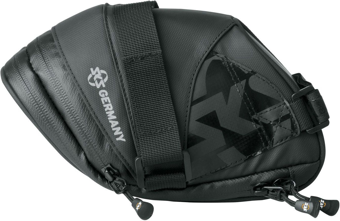 Torba podsiodłowa SKS Explorer Straps powstała, aby zapewnić najwyższy komfort rowerzystów. Chociaż projektanci niemieckiej marki projektowali ją z myślą o kolarzach górskich, bez wątpienia to produkt dla wszystkich cyklistów, którzy oczekują produktu funkcjonalnego i niezwykle wytrzymałego. Explorer Straps sprawdzi się podczas jazdy w trudnych warunkach. Została stworzona po to, aby zabezpieczyć przechowywane przedmioty przed opadami deszczu. Model uszyto z wytrzymałej, wodoodpornej gumy. Dodatkowo zamek błyskawiczny został zalaminowany, dzięki czemu woda nie przenika do wnętrza nawet w tym miejscu. Ergonomiczna konstrukcja pozwala natomiast na wygodne sięganie do wnętrza. SKS zwrócił szczególną uwagę na szczegóły, które sprawiają, że komfort użytkowania zwiększa się. Chociaż zewnętrzna tkanina jest w stonowanym, czarnym kolorze, wewnętrzna wyściółka ma intensywnie pomarańczowy kolor. Takie rozwiązanie pozwala na szybkie znalezienie potrzebnego przedmiotu. Ponadto, od frontu umieszczono elementy odblaskowe, zwiększające widoczność kolarza na drodze. Chociaż torba podsiodłowa jest kompaktowa, pozwala na zabranie ze sobą niezbędnych w trakcie jazdy przedmiotów. To dobry schowek na zestaw naprawczy i dodatkowe dętki. Dzięki intuicyjnemu oraz bardzo szybkiemu sposobowi mocowania na rzepy pozwala na szybkie przekładanie Explorer Strapsa z jednego roweru na drugi. Torba podsiodłowa SKS Explorer Straps będzie odpowiednia także do MTB ze wsparciem Vario.