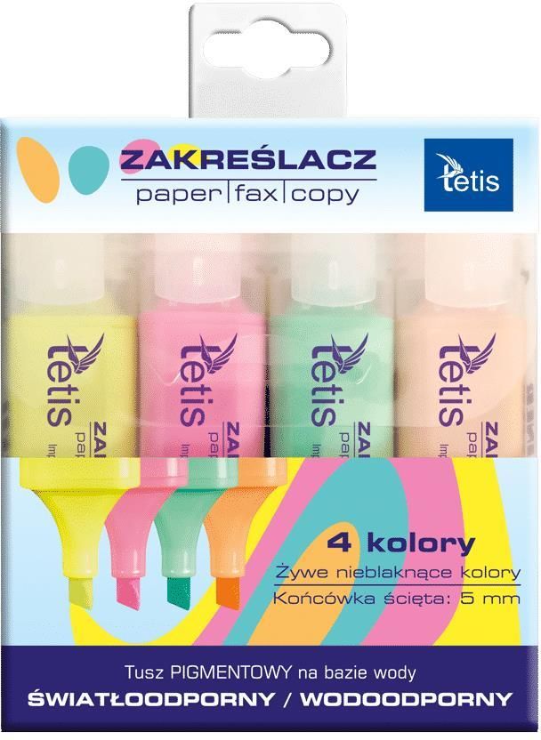 Tetis Komplet Zakreślaczy Płaskich Pastelowych 4 Kolory Nowa Dęba