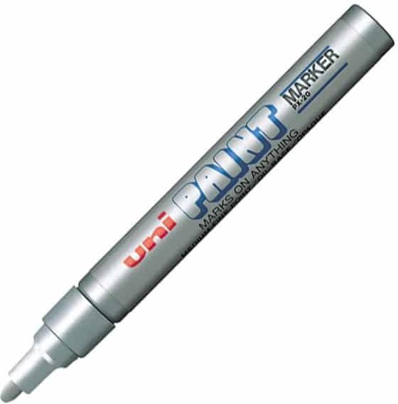 Marker permanentny w plastikowej obudowie.Profesjonalny marker olejowy UNI PX-20 do znakowania wszystkich powierzchni: szorstkich, gładkich i tłustych (metal, szkło, kamień, plastik, styropian, drewno). wodoodporne, nie tracą koloru pod wpływem światła i ekstremalnych warunków atmosferycznych na większości materiałów schnie w ciągu 40-50 sek. obudowa wykonana z aluminium – sprawia, że markery nie wysychają końcówka pisząca wykonana z akrylu okrągła końcówka, grubość linii: 2,2-2,8 mm