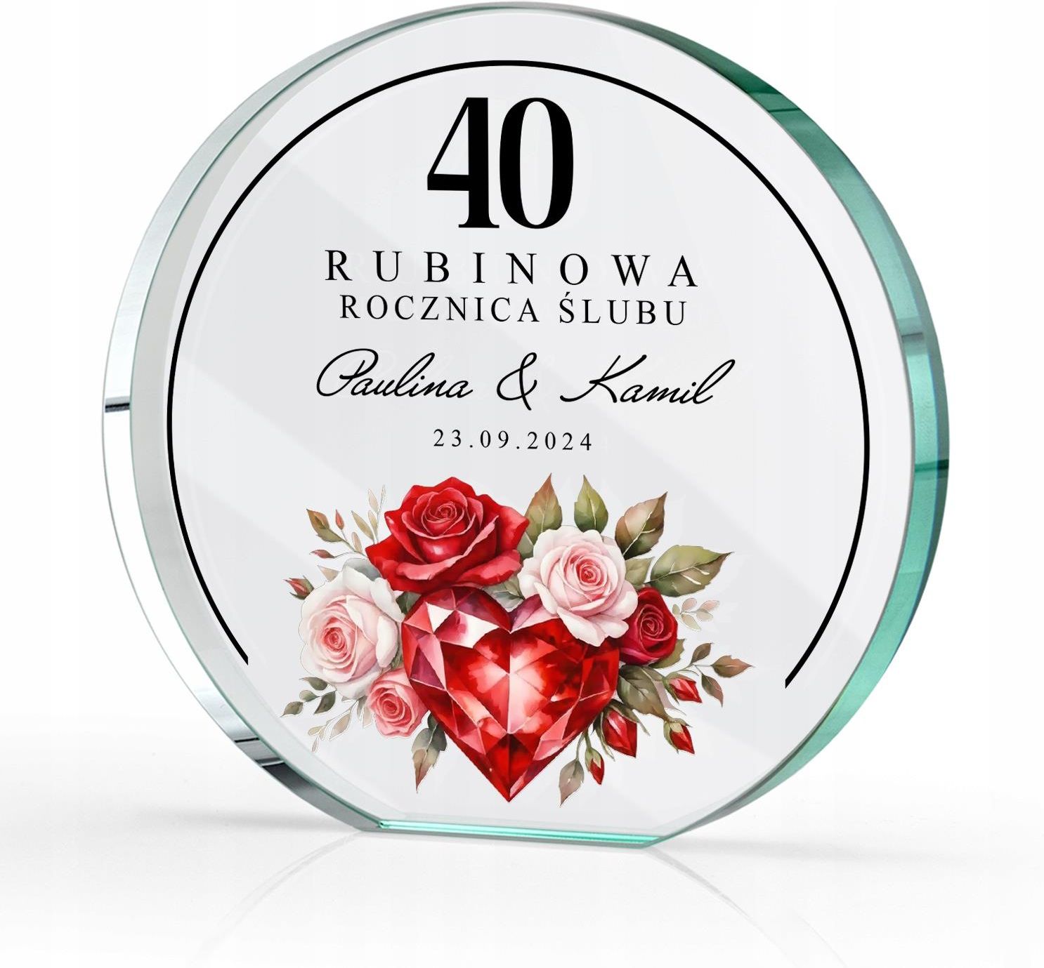 Eprezenty na Rocznicę Ślubu 40 Rodziców Dziadków Statuetka Szklana Nadruk Nowa Sarzyna
