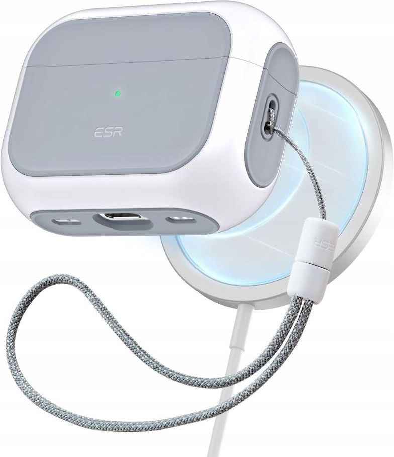 Etui ESR Orbit Halolock MagSafe - Apple AirPods Pro 1 / 2 Kolor: Biały Hybrydowe etui Orbit HaloLock to wygoda bezprzewodowego ładowania Magsafe. Wyposażony w silne magnesy case, zapewni bezpieczne i szybkie uzupełnienie energii bez konieczności zdejmowania pokrowca. Wykonany z dwóch uzupełniających się materiałów, twardej powłoki z PC oraz elastycznego, odpornego na wstrząsy TPU. Trwała i wytrzymała konstrukcja zapewni doskonałą ochronę przed zarysowaniami oraz w trakcie upadku. Idealnie dopasowany, z precyzyjnie wykonanymi wycięciami na głośniki oraz diodę informującą o stanie naładowania. Do zestawu producent dołączył praktyczną smycz zwiększającą zakres możliwości - słuchawki można podpiąć np. do kluczy, torby lub plecaka, dzięki czemu upadek czy zgubienie zestawu staje się wręcz niemożliwe. Najważniejsze cechy produktu: 100% Oryginalny Zapakowany w oryginalne opakowanie Idealny dla ochrony przed uszkodzeniami Łatwy w montażu i demontażu Kompatybilny z systemem ładowania Magsafe Praktyczny i funkcjonalny Świetnie dopasowany Precyzyjnie docięte otwory Zestaw zawiera: 1 x Etui ESR Orbit HaloLock