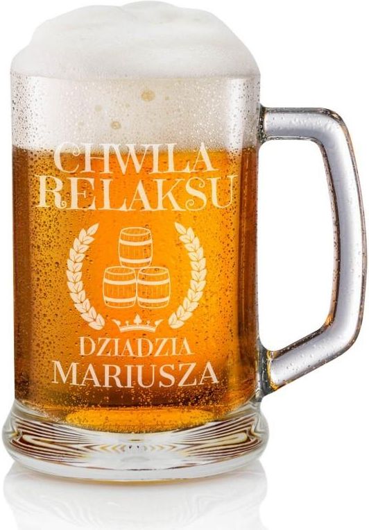 Parametry produkt polski wysokiej jakości, klasyczny kufel wykonany z grubego szkła najwyższej wytrzymałości, odporny na ścieranie i matowienie pojemność: 0,5 l, wysokość: 13 cm, średnica u góry: 8,5 cm, średnica podstawy: 10 cm, grawer na produkcie wykonujemy techniką laserową, grawer wykonujemy jednostronnie, gwarancja jakości graweru, Personalizacja Aby w pełni spersonalizować produkt, prosimy o przesłanie potrzebnych danych na adres email, a nasi graficy zajmą się resztą :)