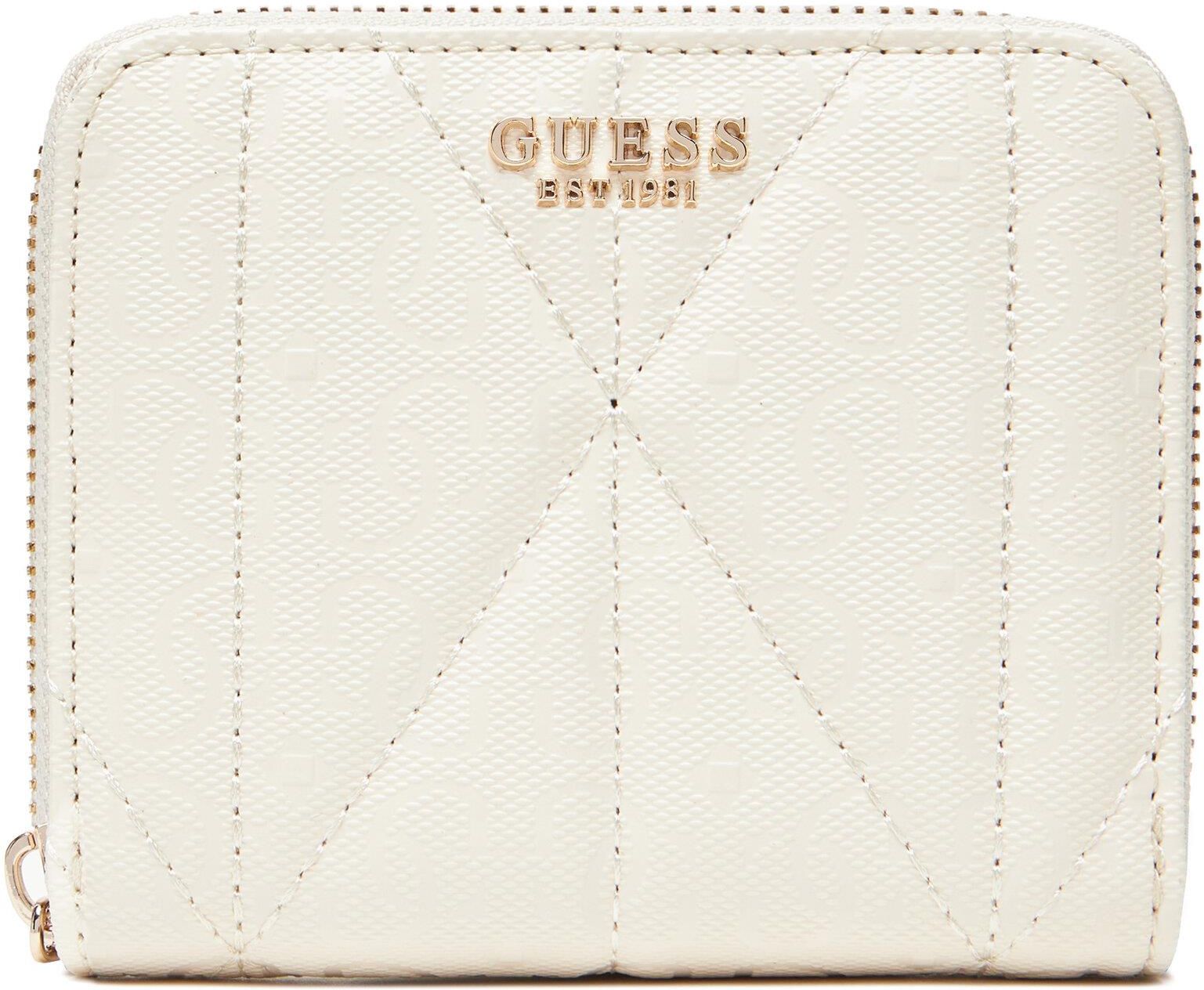 Portfel Guess wymiary: 11 x 9 x 2 cm materiał: 100% poliuretan skóra syntetyczna po zewnętrznej stronie 4 miejsca na karty jedna przegródki na banknoty kieszeń na bilon zamykana na zatrzask metalowe logo lakierowany print logo 4G gwarancja producenta 2 lata