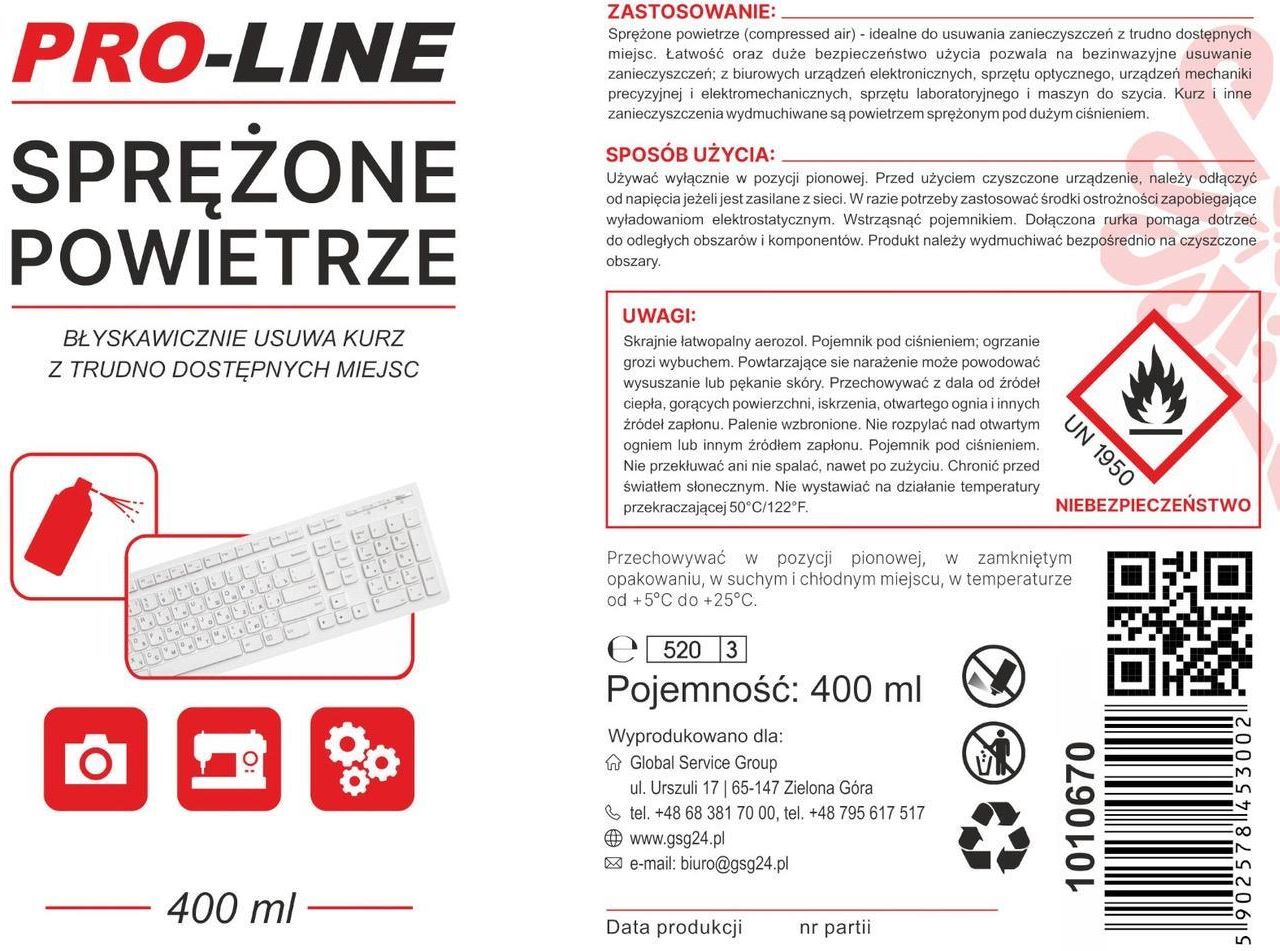 Pro Line Sprężone Powietrze Do Czyszczenia Elektroniki Maszyn Do Szycia Spray 400Ml Nowa Sarzyna