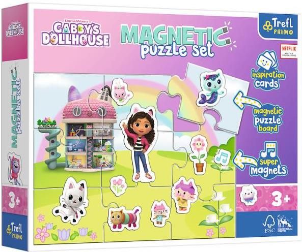Trefl Puzzle magnetyczne 9el. Poznaj świat Gabi 93383 Poznaj świat Gabi to kreatywny zestaw do zabawy magnesami dla najmłodszych.  Korzystając z kart z inspiracjami dziecko może odwzorować pokazane na nich scenki lub tworzyć je samodzielnie. Zabawa zestawem rozwija kreatywność i wyobraźnię.