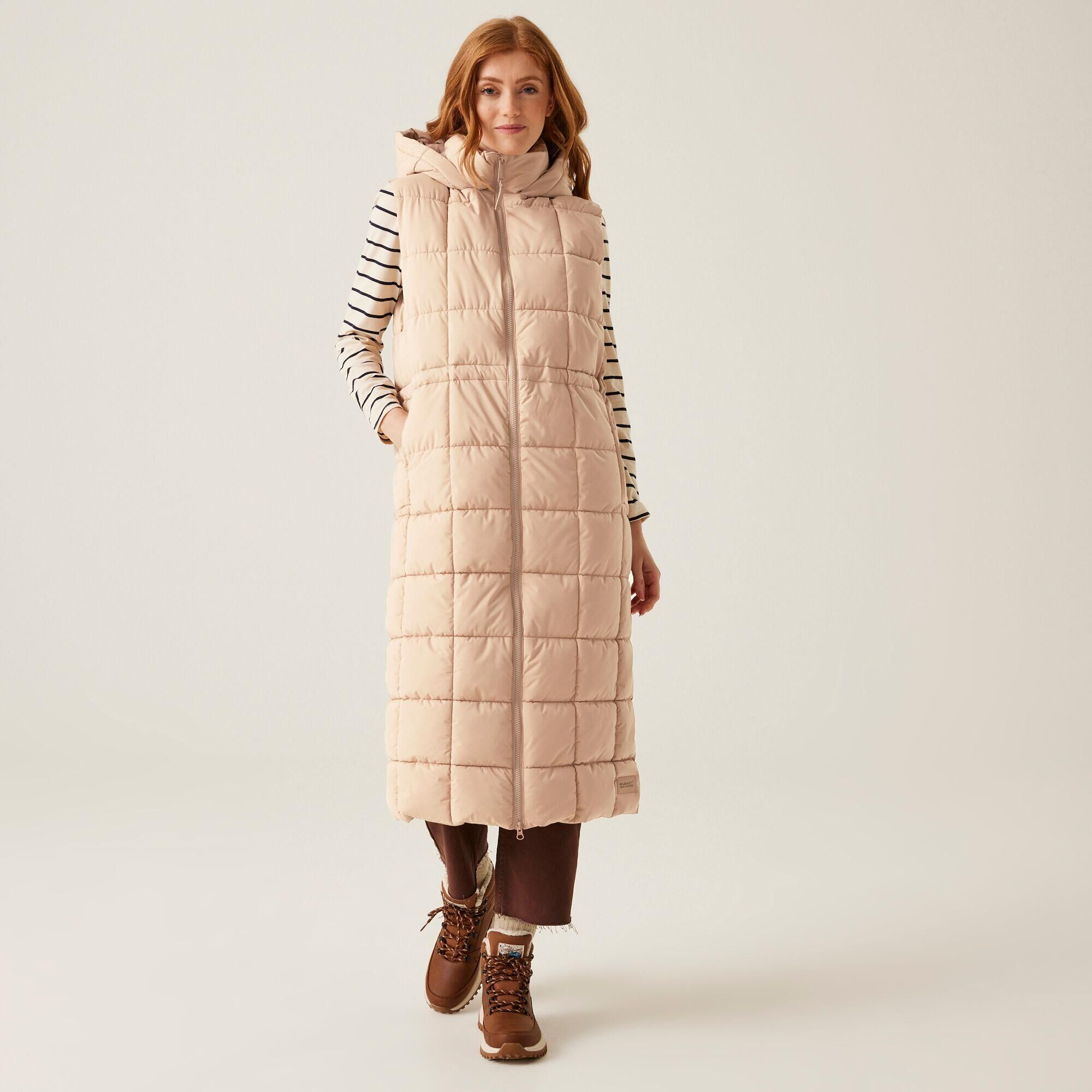Damska długa kamizelka Regatta Leandra – ciepła, stylowa i odporna na deszczDamska kamizelka Regatta Leandra to elegancki i funkcjonalny wybór na chłodne dni. Wykonana z wytrzymałego materiału z hydrofobową impregnacją, zapewnia skuteczną ochronę przed lekkim deszczem. Wypełnienie z przetworzonego puchu syntetycznego Feather Free gwarantuje komfort cieplny bez użycia materiałów pochodzenia zwierzęcego.Najważniejsze cechy produktu Izolacja Feather Free – syntetyczny puch o średniej gramaturze, zapewniający ciepło i lekkość. Hydrofobowa impregnacja zewnętrzna – chroni przed wilgocią i lekkim deszczem. Podszewka z tafty poliestrowej – miękka i przyjemna w dotyku, gwarantuje wygodę noszenia. 2 dolne kieszenie na suwak – idealne na drobiazgi i ogrzanie dłoni. Wewnętrzna kieszeń na zamek – praktyczne miejsce na telefon lub dokumenty. Dłuższy krój – podkreśla sylwetkę i zapewnia dodatkowe ciepło w chłodne dni. Technologia Feather Free – ciepło bez użycia pierzaInnowacyjna izolacja Feather Free to syntetyczny puch, który doskonale imituje właściwości naturalnego pierza, zachowując lekkość i sprężystość. Jest odporny na wilgoć i szybkoschnący, co zapewnia wygodę oraz trwałość użytkowania.Najważniejsze zalety kamizelki Regatta Leandra #9989; Ciepła i lekka – idealna na chłodne dni w sezonie jesienno-zimowym. #9989; Odporna na lekki deszcz – dzięki trwałej impregnacji zewnętrznej. #9989; Stylowa i kobieca – dłuższy krój świetnie komponuje się z miejskimi stylizacjami. #9989; Ekologiczna – wykonana z materiałów pochodzenia niezwierzęcego. Specyfikacja techniczna Model: Leandra Kolor: beżowy Materiał zewnętrzny: poliester z hydrofobową powłoką Podszewka: 100% tafta poliestrowa Izolacja: Feather Free (syntetyczny puch) Kieszenie: 2 dolne na suwak, 1 wewnętrzna zasuwana Krój: długi, dopasowany, pikowany Zastosowanie kamizelki Regatta Leandra Na chłodne dni jako warstwa wierzchnia Do miasta i na spacery Do pracy i na co dzień Na weekendowe wyjazdy i rekreację